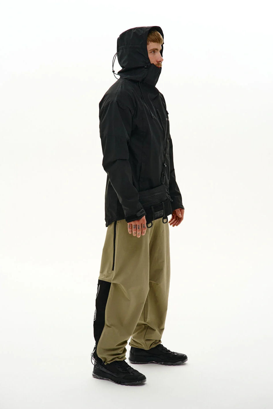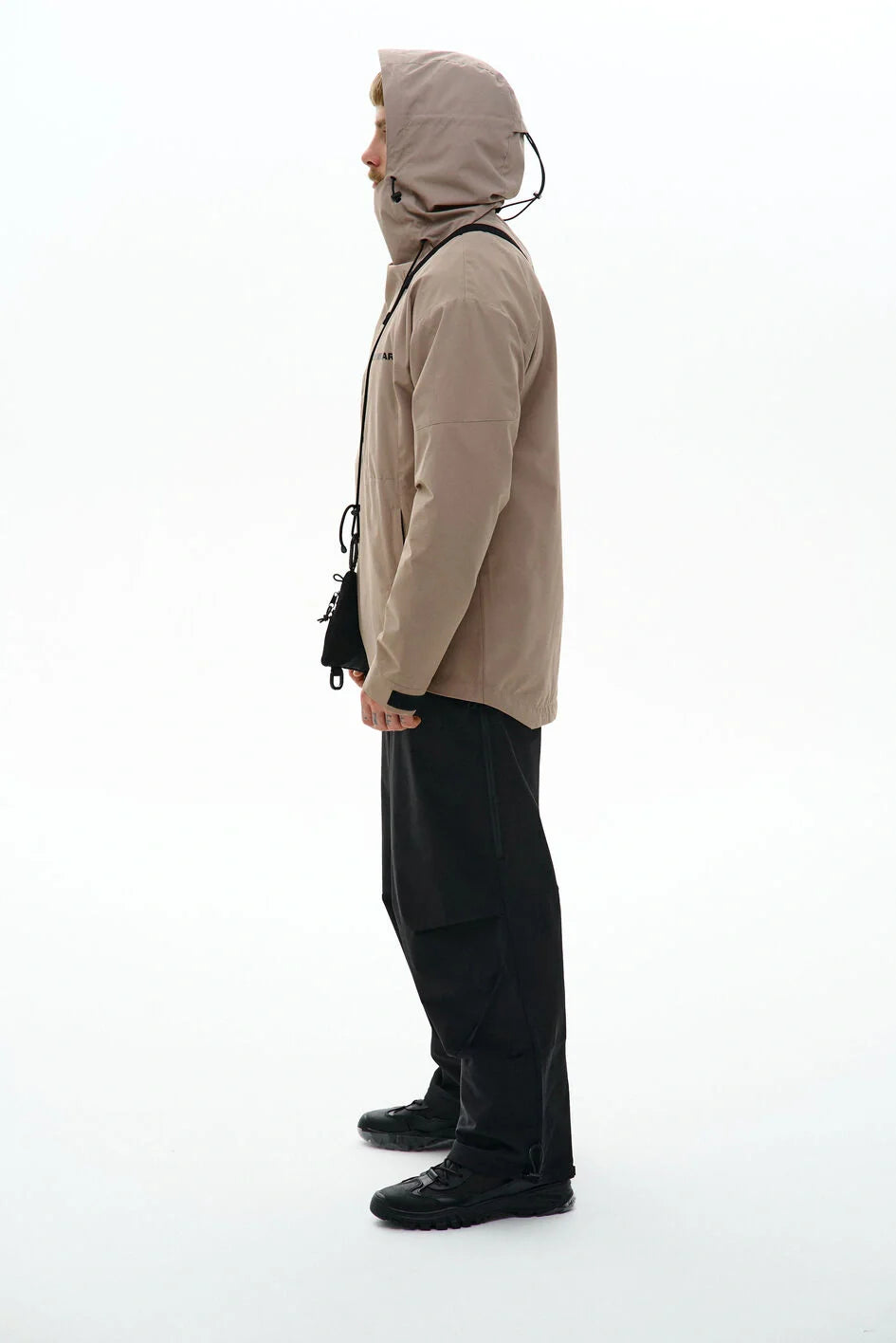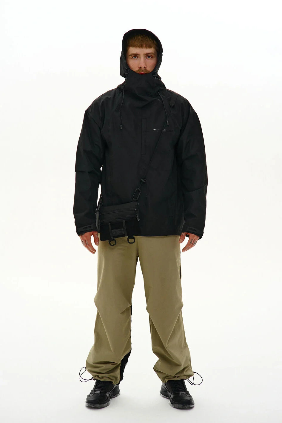 Two-layer ripstop: outer layer — nylon 6.6 Micro-rip, inner layer — PU membrane 5/5K. The fabric is ultra-light, durable, waterproof (5000 mm), breathable (5000 mm), and wind-resistant. Smooth to the touch, dense, with a distinct technical texture. Non-elastic, holds its shape well, and blocks external influences. Equipped with YKK hardware — reinforced zippers with high durability.