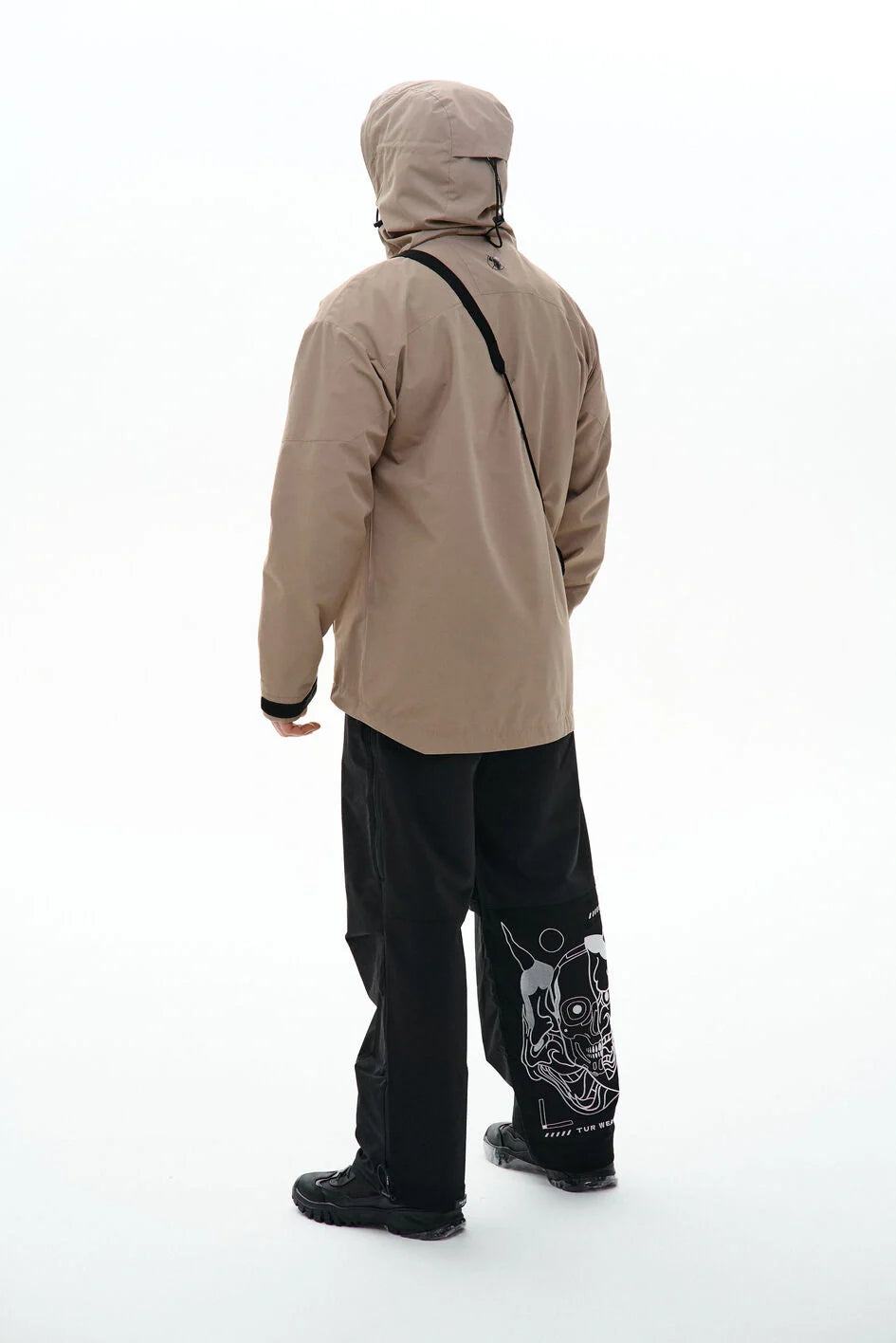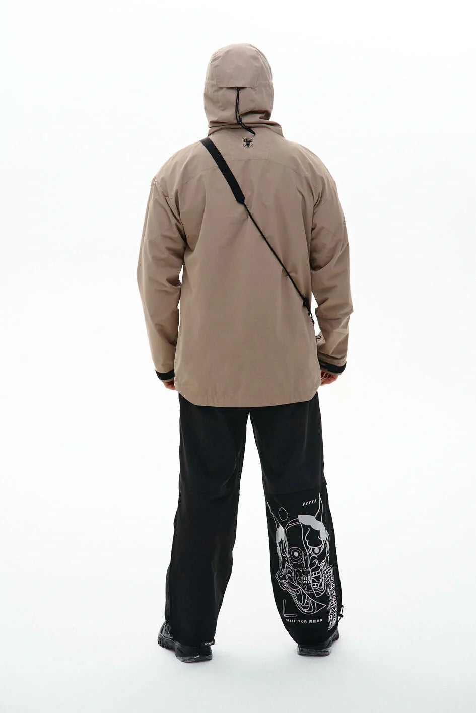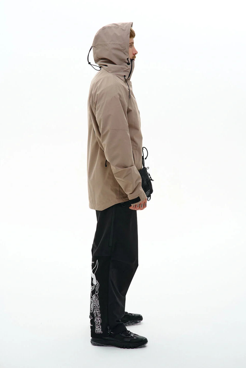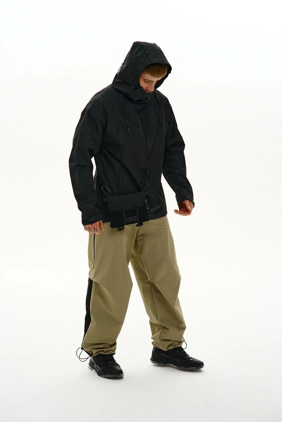 Two-layer ripstop: outer layer — nylon 6.6 Micro-rip, inner layer — PU membrane 5/5K. The fabric is ultra-light, durable, waterproof (5000 mm), breathable (5000 mm), and wind-resistant. Smooth to the touch, dense, with a distinct technical texture. Non-elastic, holds its shape well, and blocks external influences. Equipped with YKK hardware — reinforced zippers with high durability.