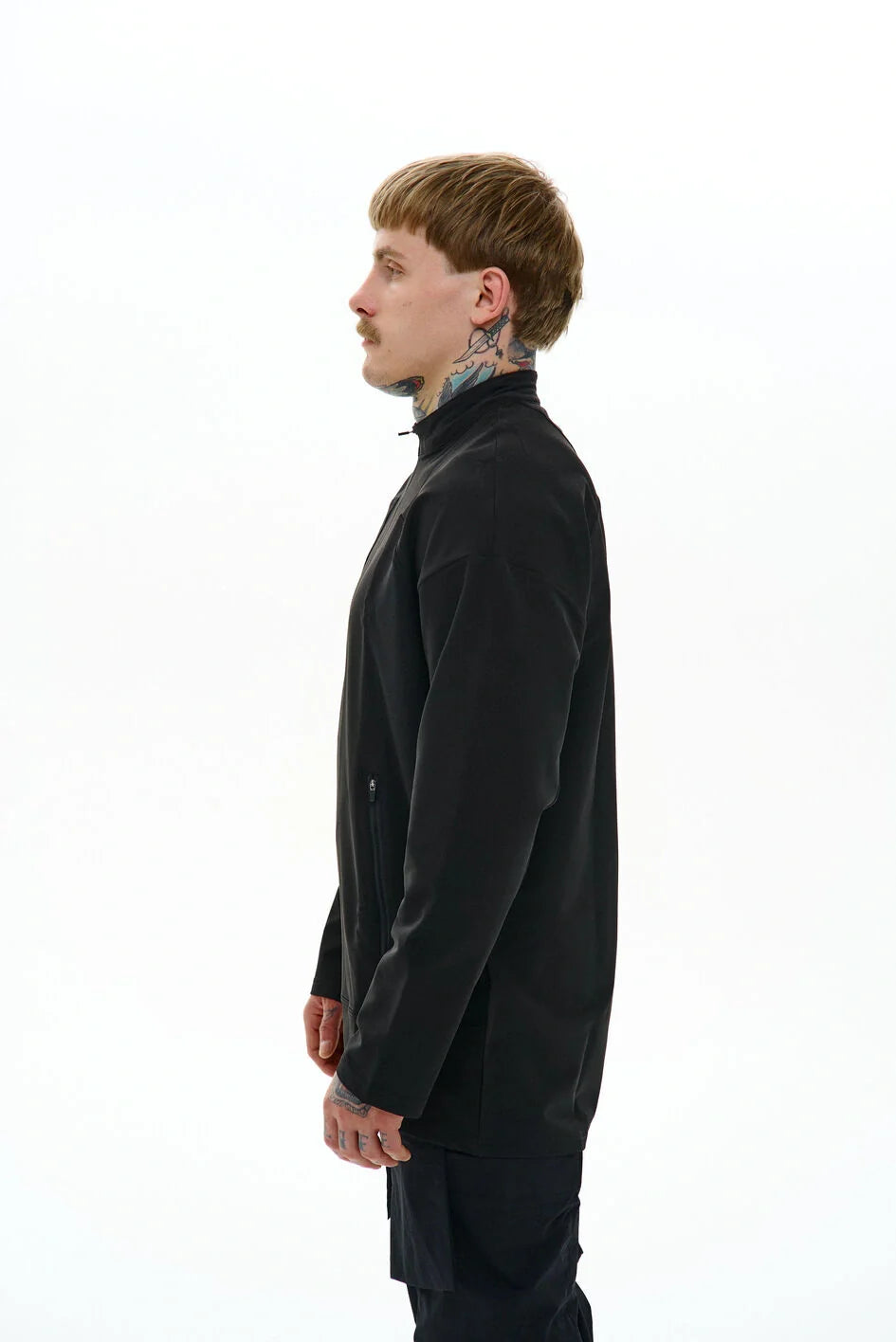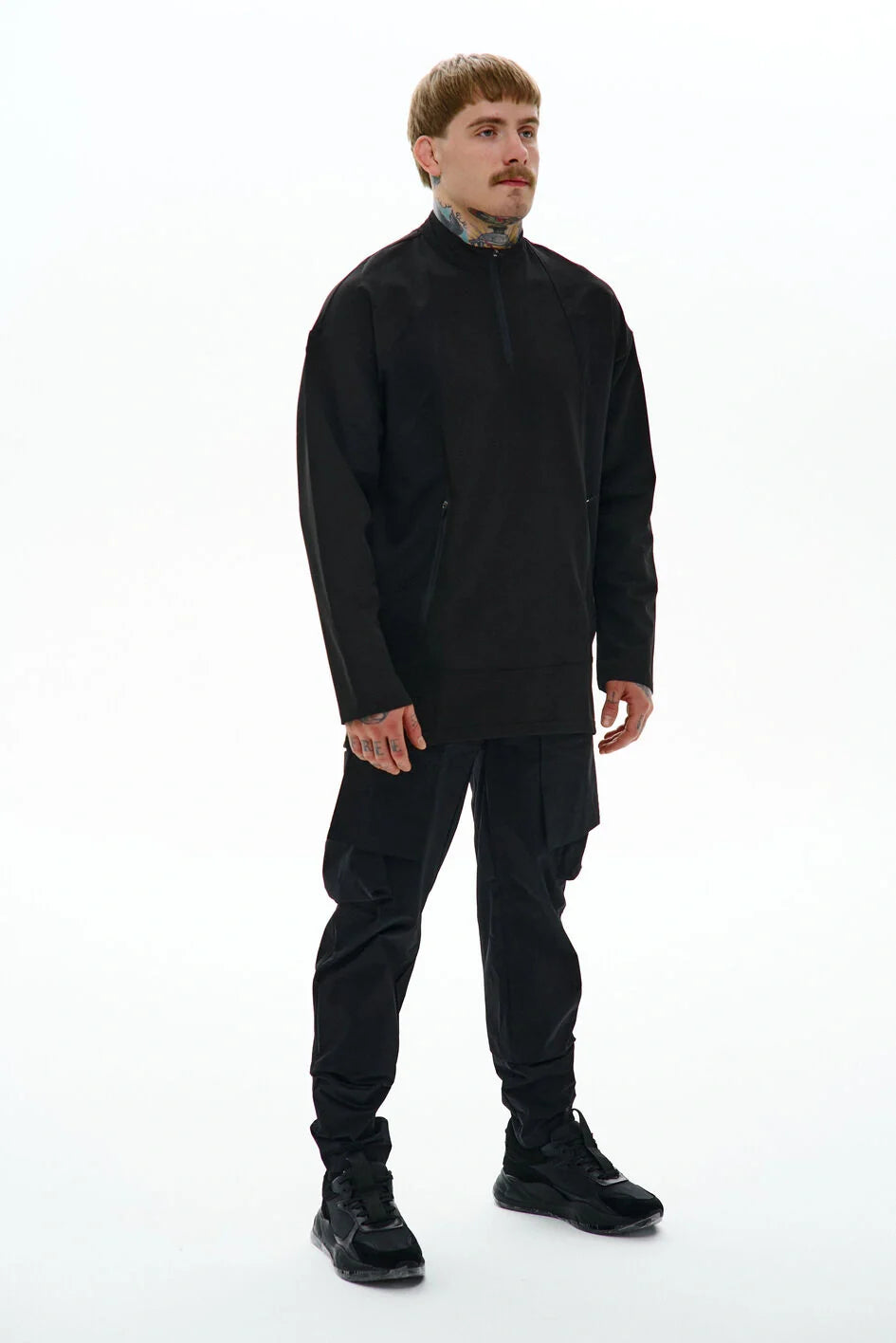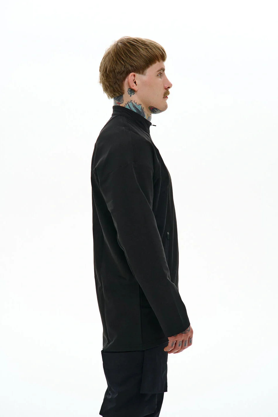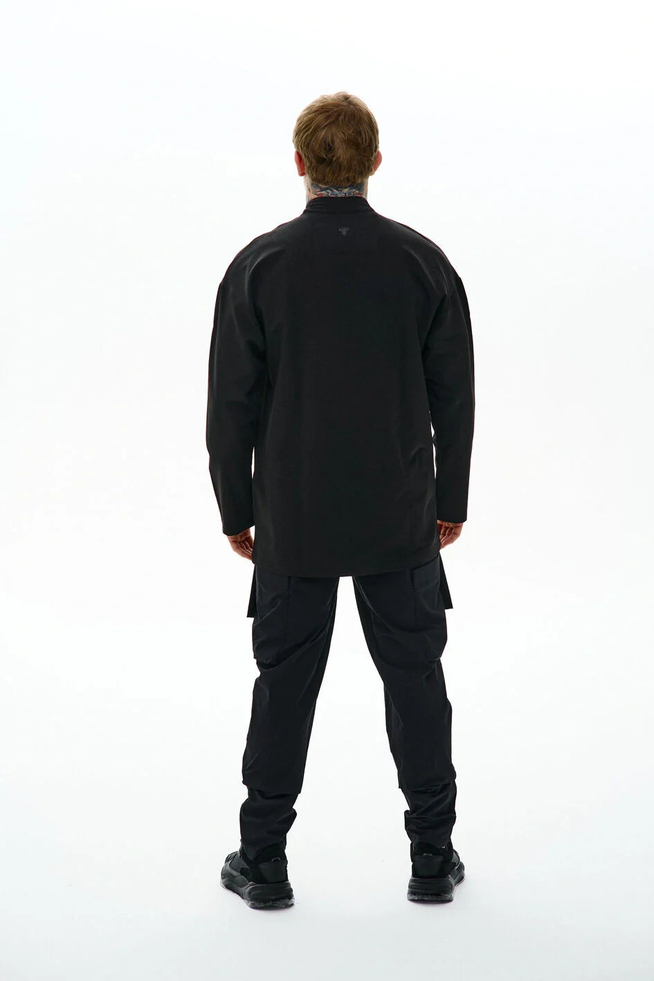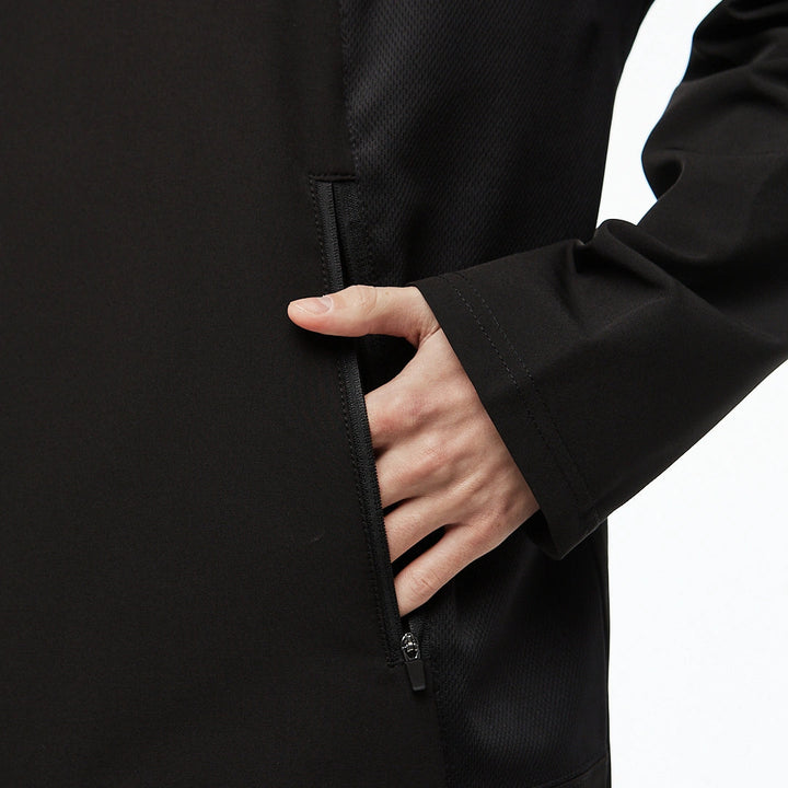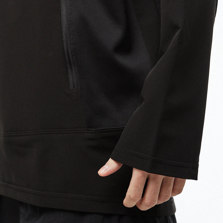 Medium-length sweatshirt with a complex anatomical cut that highlights the minimalist strength of a modern look. The base is lightweight nylon, complemented with Coolmax inserts on the sides, back, and inner sleeves for better ventilation and comfort. Two hidden zippered pockets integrated into the front seams. The center zipper goes up to the chest, creating a visual accent in the upper part. Seams are finished with an overlock machine, and there is a logo print on the back. Minimalism that speaks volumes. An ideal base for an urban look, where every detail serves both function and style.