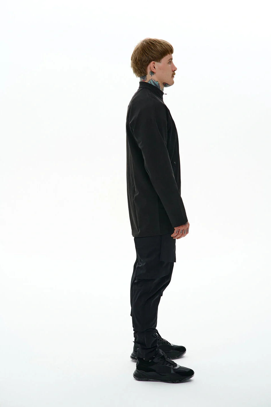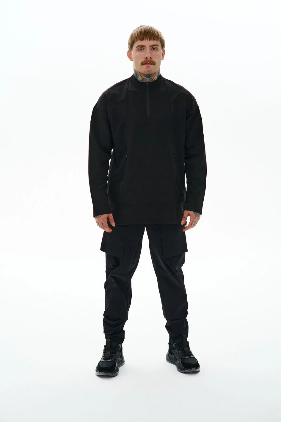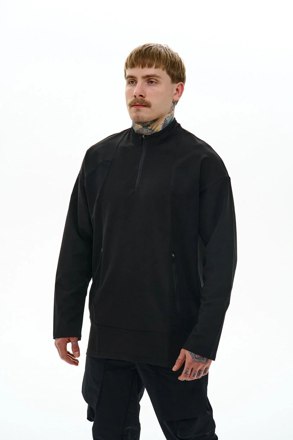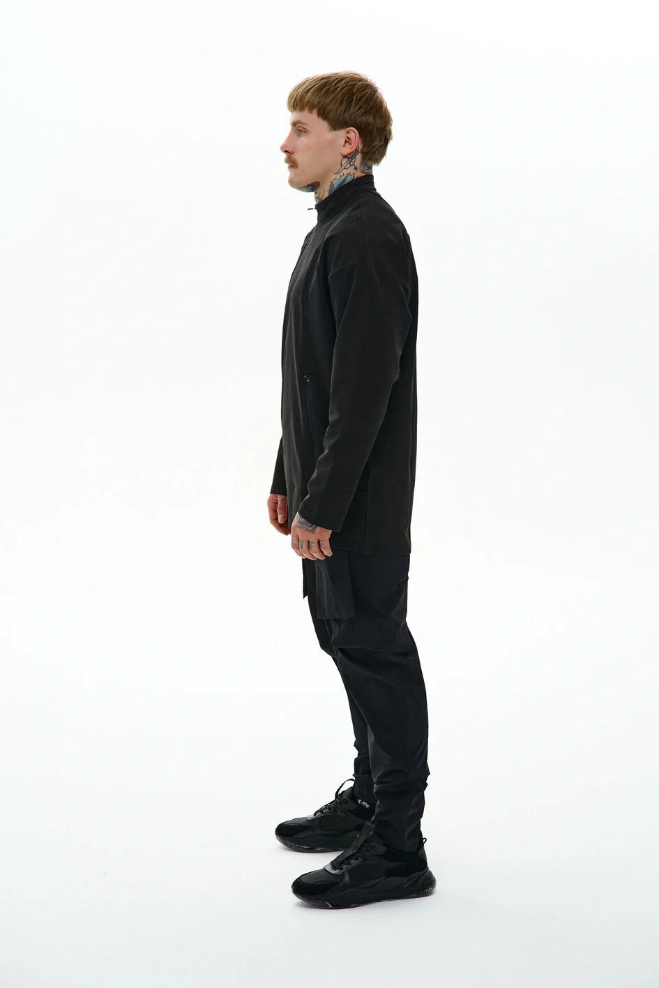 Medium-length sweatshirt with a complex anatomical cut that highlights the minimalist strength of a modern look. The base is lightweight nylon, complemented with Coolmax inserts on the sides, back, and inner sleeves for better ventilation and comfort. Two hidden zippered pockets integrated into the front seams. The center zipper goes up to the chest, creating a visual accent in the upper part. Seams are finished with an overlock machine, and there is a logo print on the back. Minimalism that speaks volumes. An ideal base for an urban look, where every detail serves both function and style.