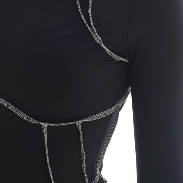 Long-sleeve body made from high-quality nylon that feels like a second skin – perfectly fitting and highlighting the figure. An excellent choice for cooler seasons: autumn, winter, and spring. External seams on the front and back visually accentuate the silhouette, stitched with contrasting white thread. Pairs perfectly with the “Orvia” hoodie and “Void” cargo pants – a set for a true urban samurai.