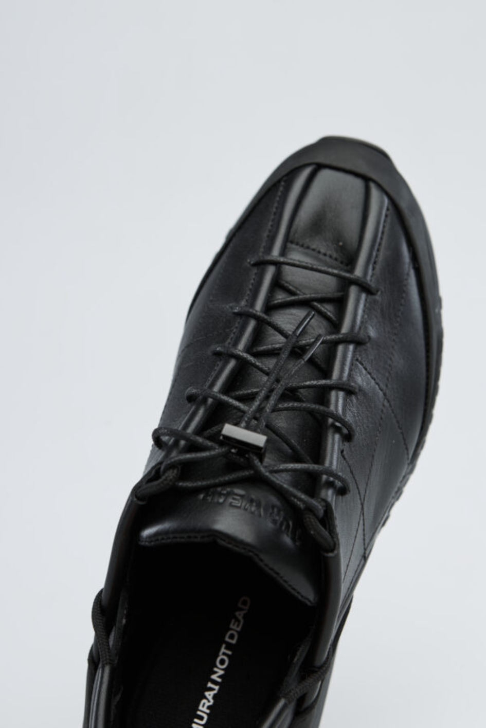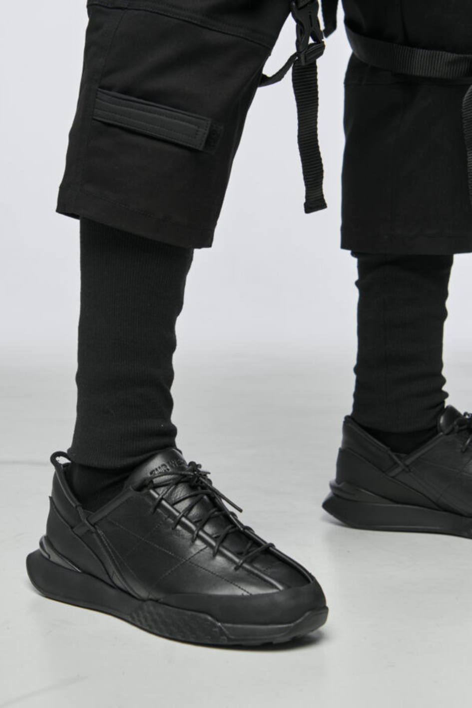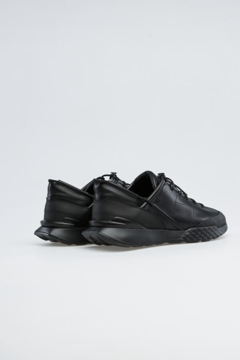 Sneakers made of leather with a rubberized front. Six pairs of eyelets for laces on the instep, with metal lace fasteners. Lightweight and well-fitting on the foot.