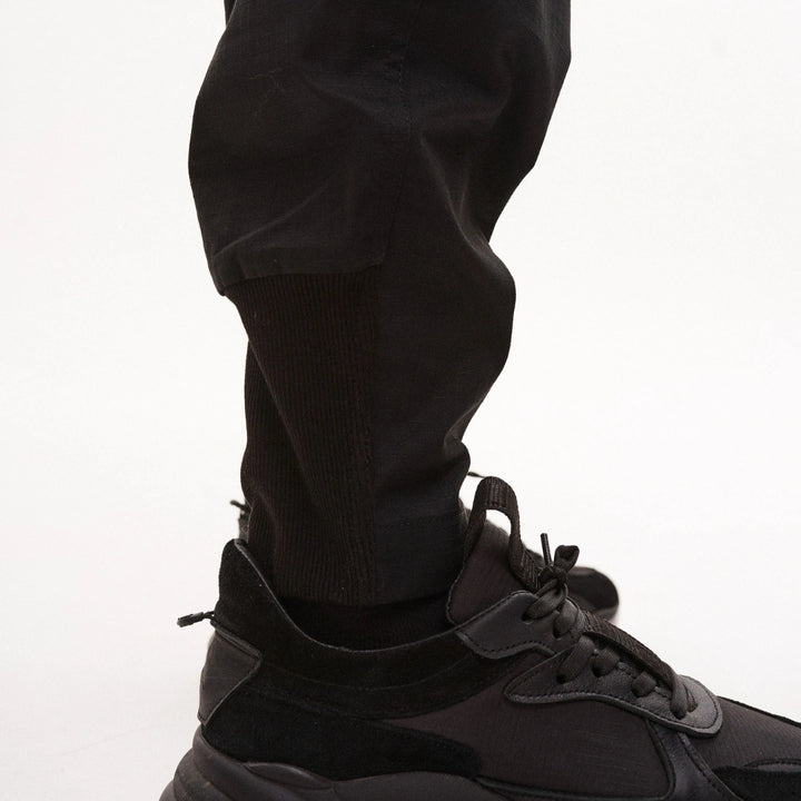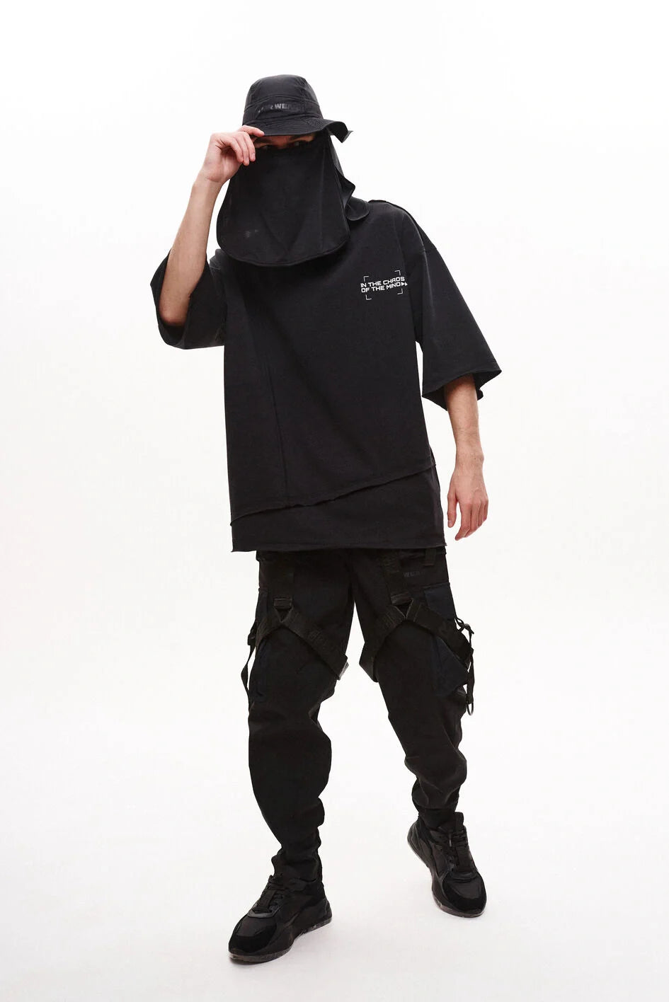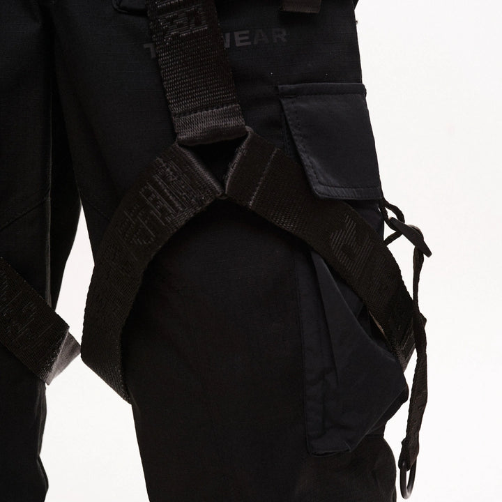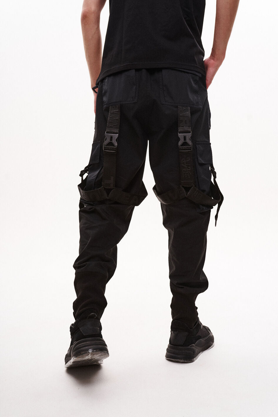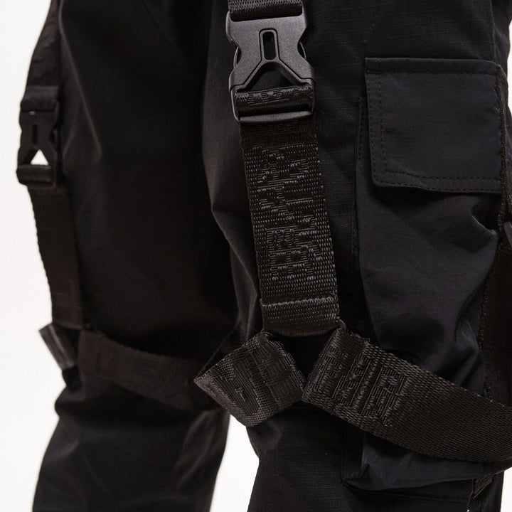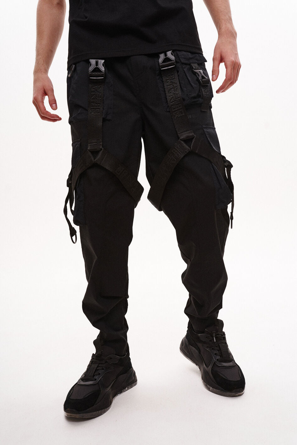 Loose-fit cargo pants for those who value freedom of movement and control over every detail. Seven functional pockets, including a mini patch pocket with a flap — ample space even for chaos. Removable straps with buckles add a technical vibe and allow the look to be transformed. The waistband features elastic with an integrated belt and dual adjustment. Ribbed cuffs at the back of the leg openings ensure a snug fit and sharp silhouette. The fly is functional, just like you.