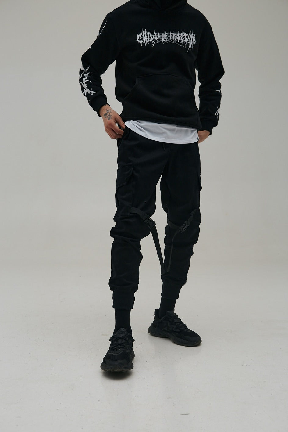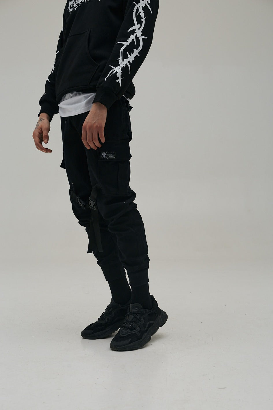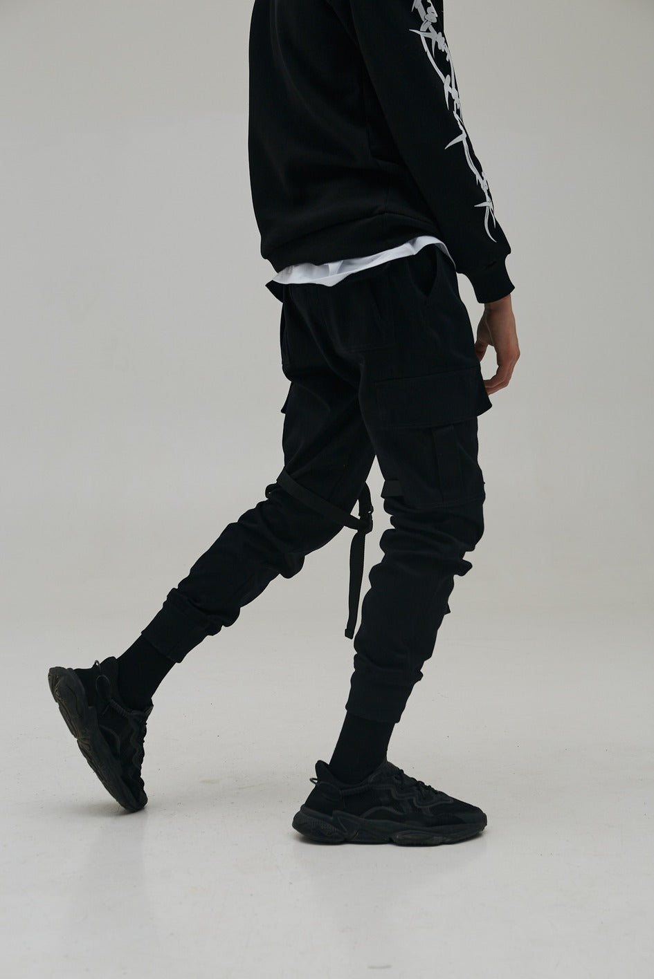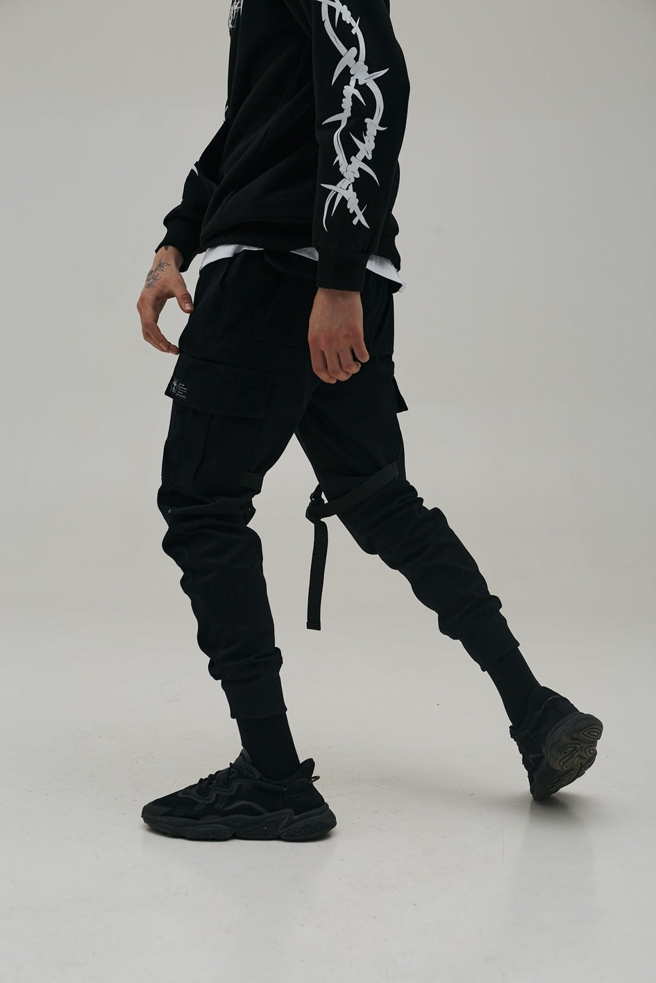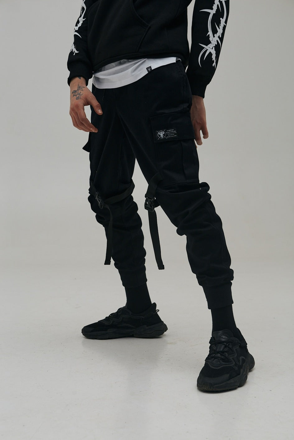 The standout feature is the straps with fixators at the knee area, adding a tactical vibe and emphasizing the silhouette. Perfect for those who want to look sharp even in everyday life.
