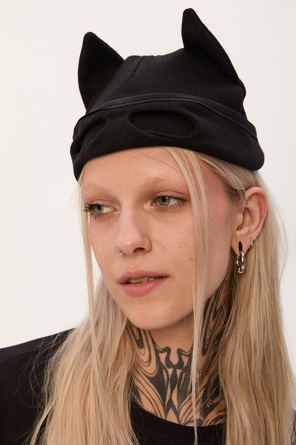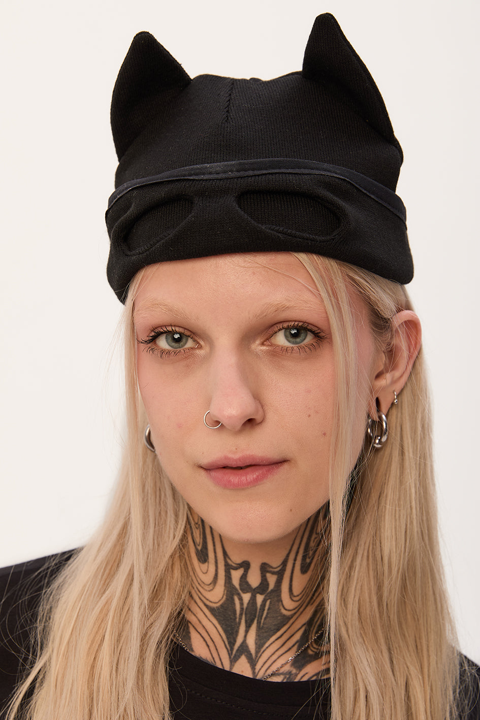 A snug-fitting beanie made from an elastic wool-acrylic blend. Keeps its shape while providing comfort and warmth — a playful yet functional accessory.