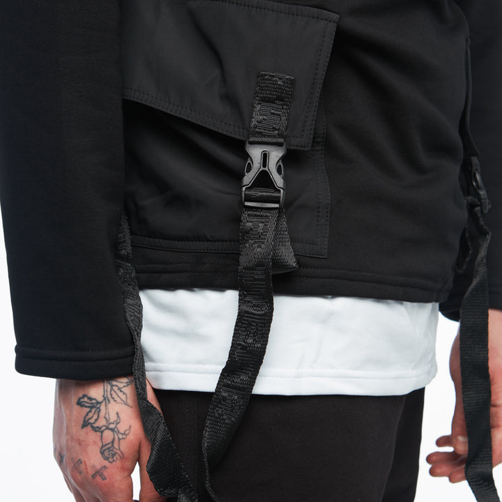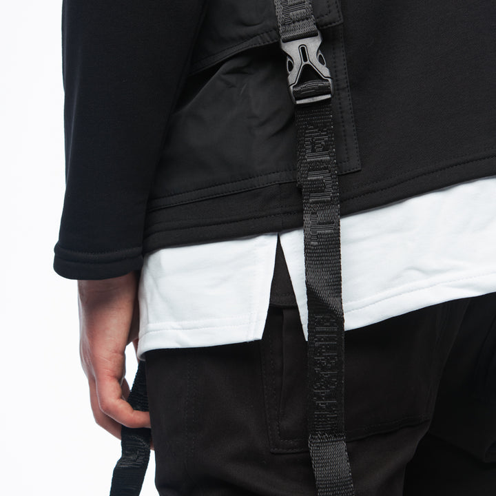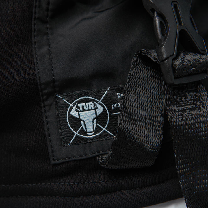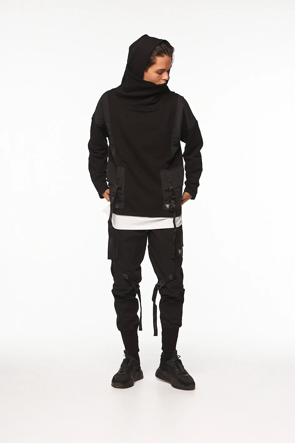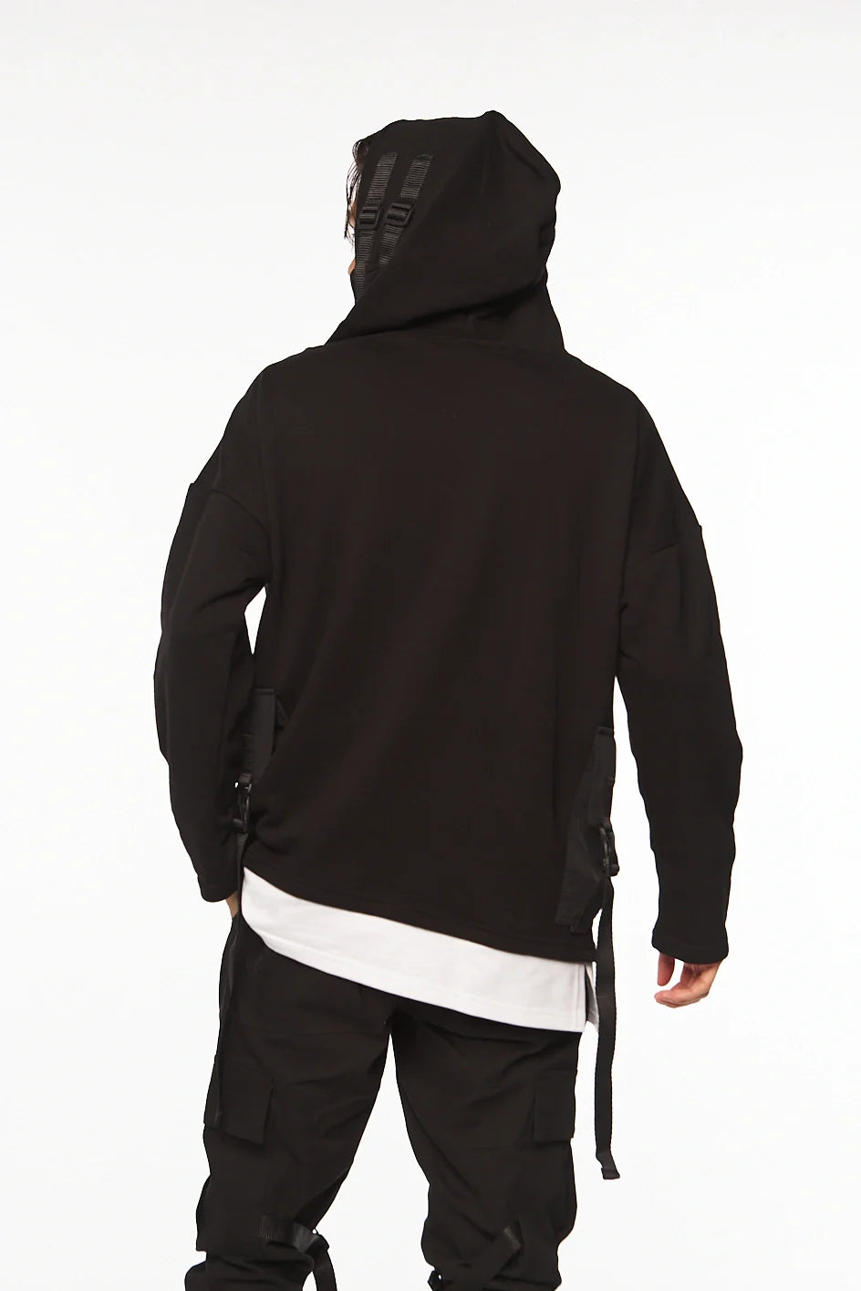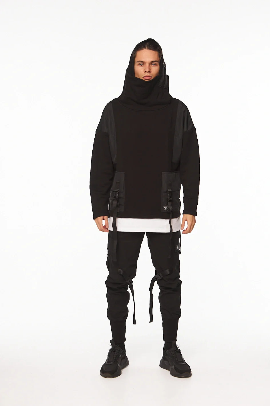 Oversized hoodie for those who don’t tolerate limits. The large cowl-style hood creates a sense of armor and protection, while the fasteners on the voluminous pockets add a tactical edge. The contrasting white hem gives the illusion of layered styling with a T-shirt — effortless yet impactful. This isn’t just a top layer — it’s a statement. Choosing functionality, comfort, and character? This is it.