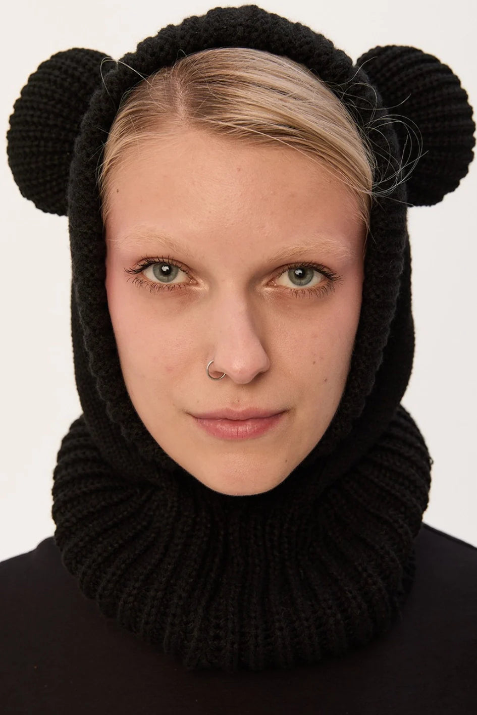 A balaclava made of elastic cotton, offering good stretch and comfort.