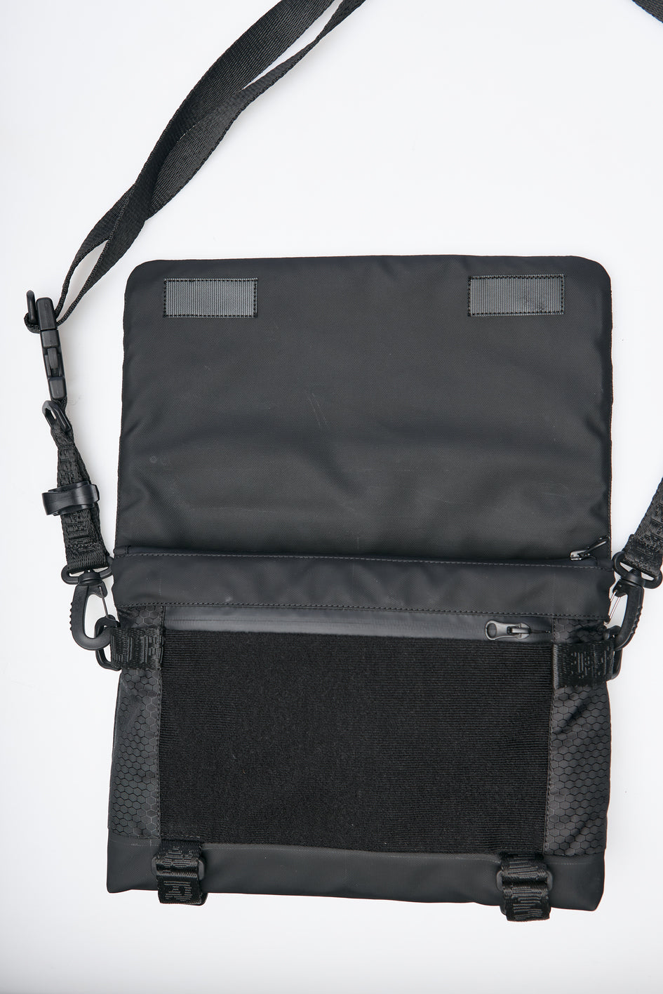 A shoulder messenger bag with six pockets: