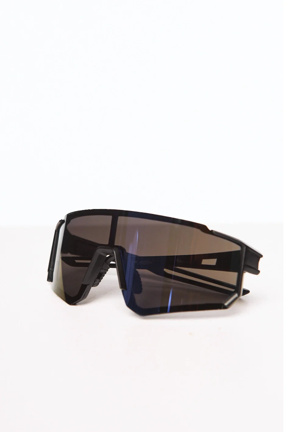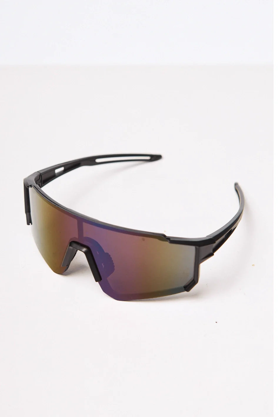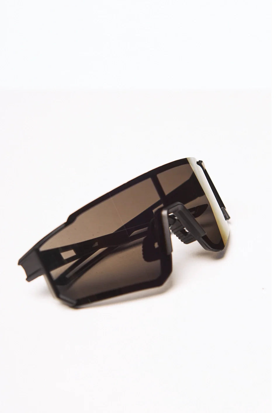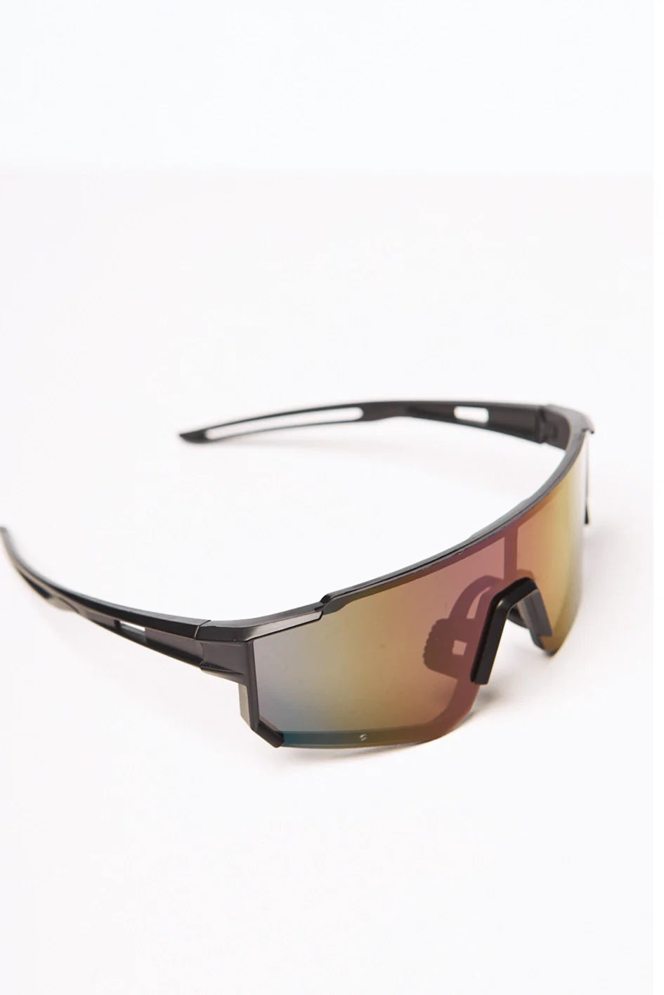 Sport-style photochromic sunglasses in a sleek black frame. Equipped with polycarbonate lenses that shield your eyes from sun, wind, and sand. UV 400 protection ensures maximum defense against harmful ultraviolet rays. Comes with a protective case.