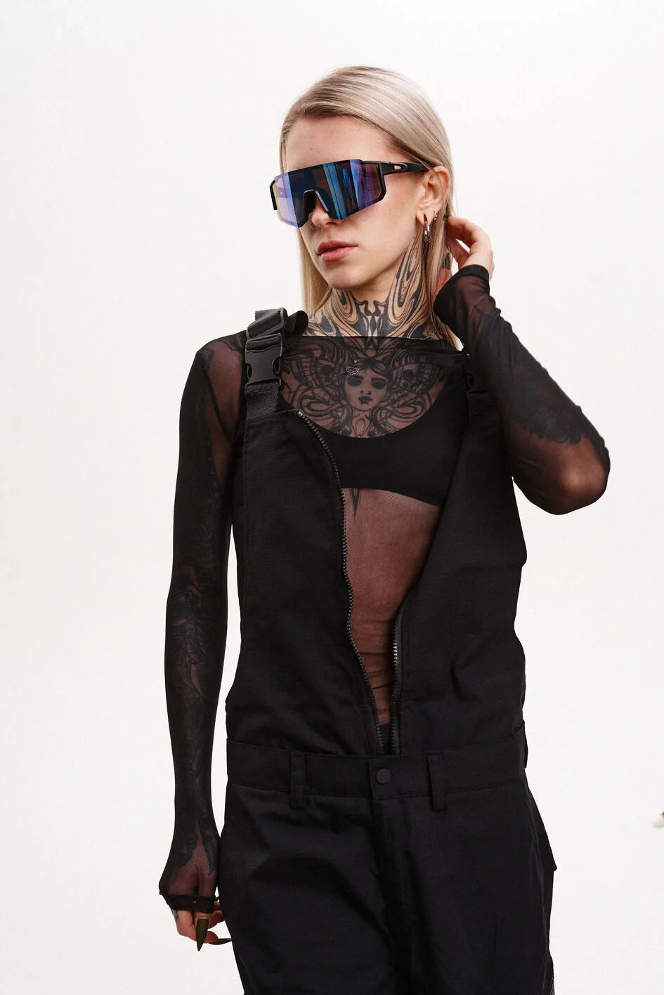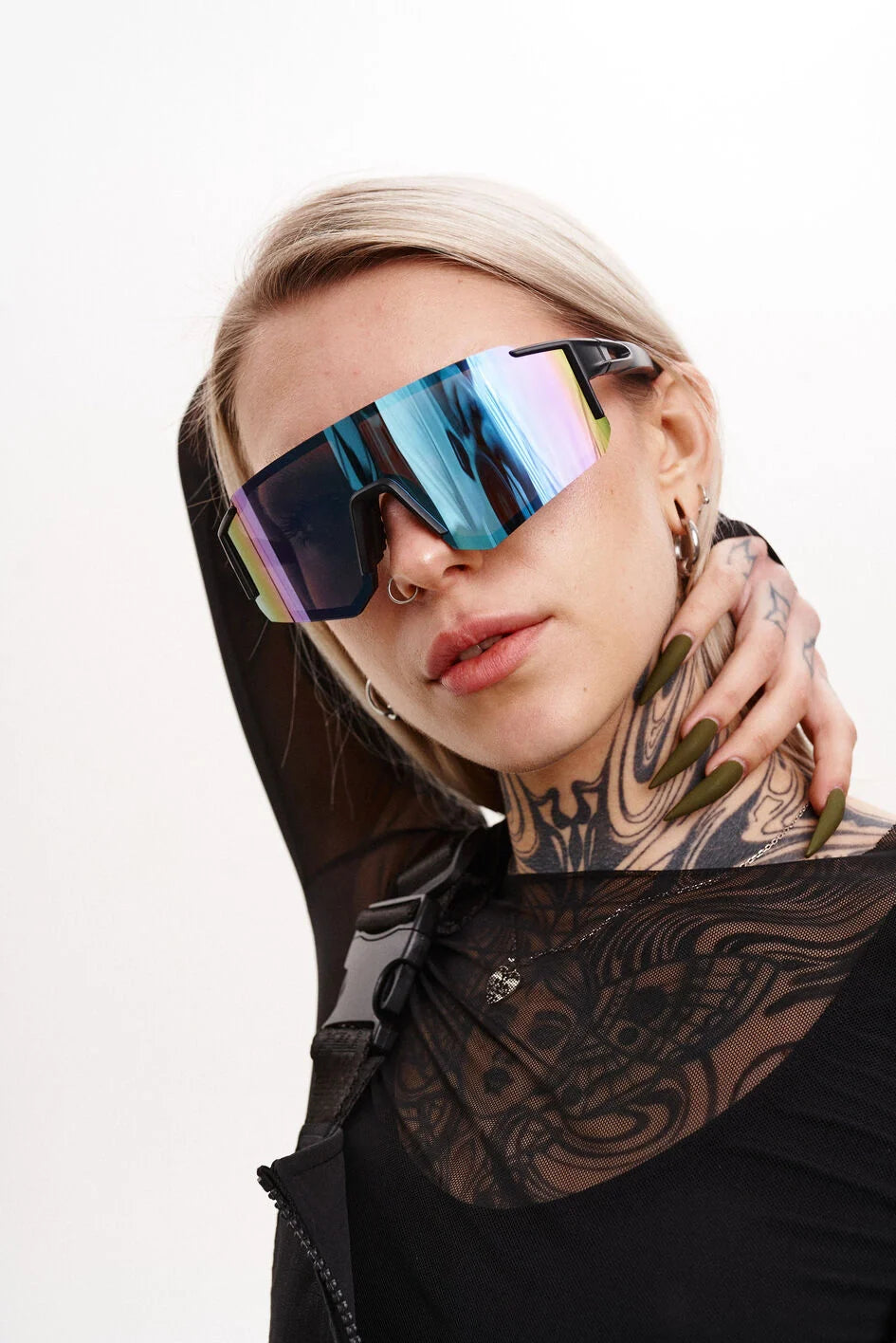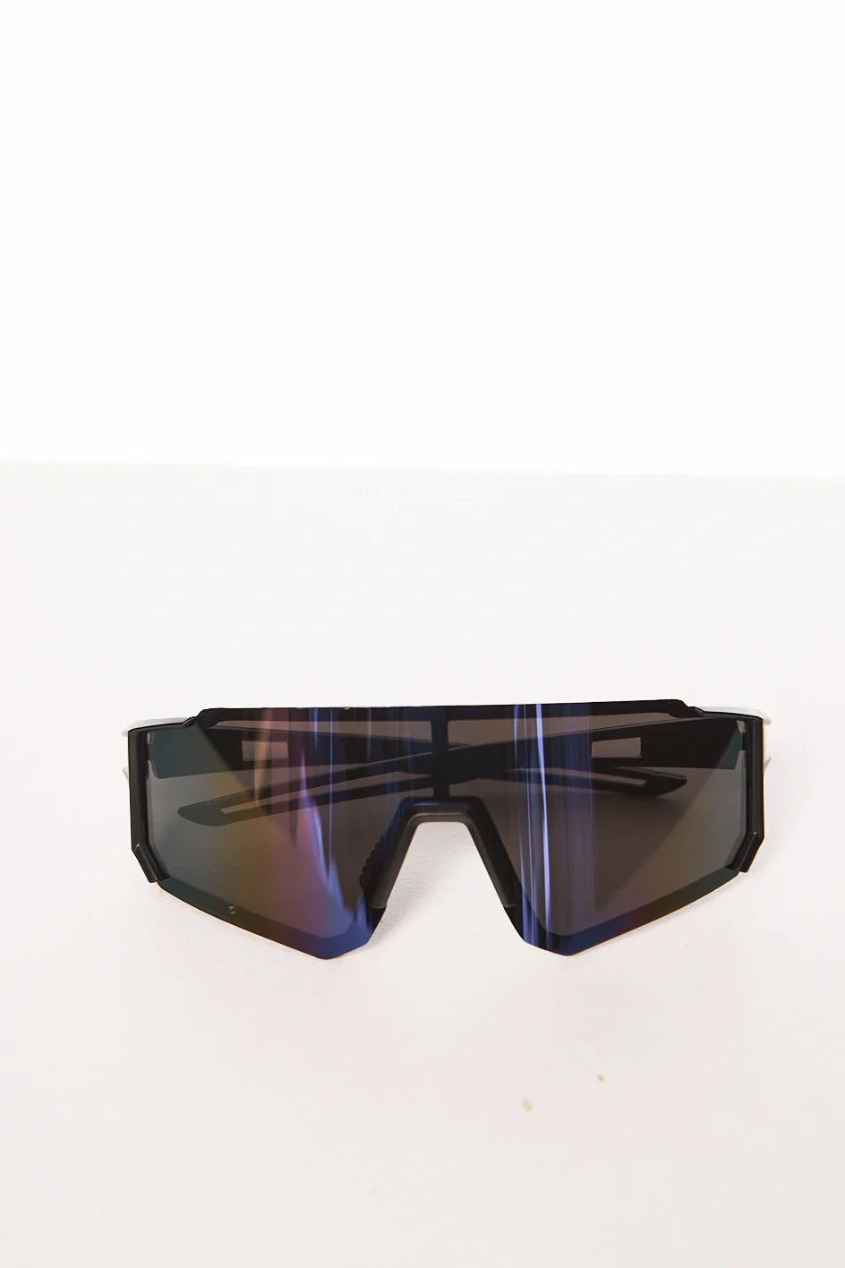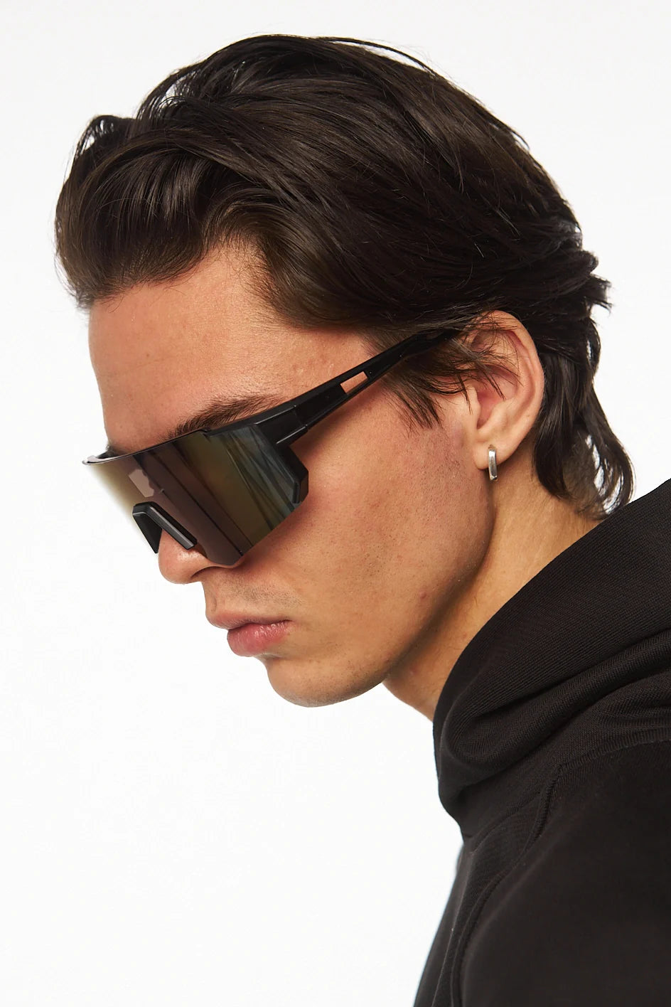 Sport-style photochromic sunglasses in a sleek black frame. Equipped with polycarbonate lenses that shield your eyes from sun, wind, and sand. UV 400 protection ensures maximum defense against harmful ultraviolet rays. Comes with a protective case.