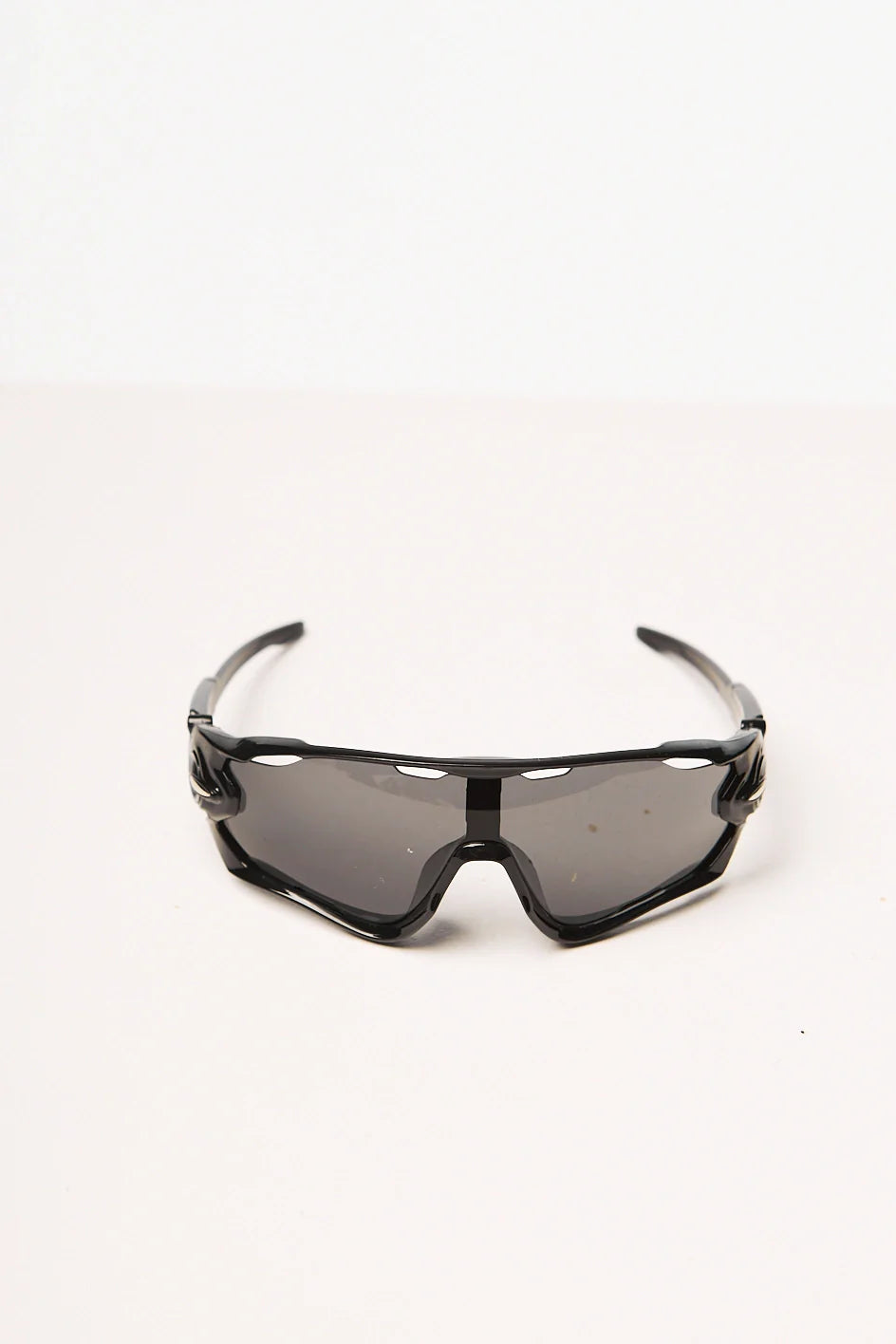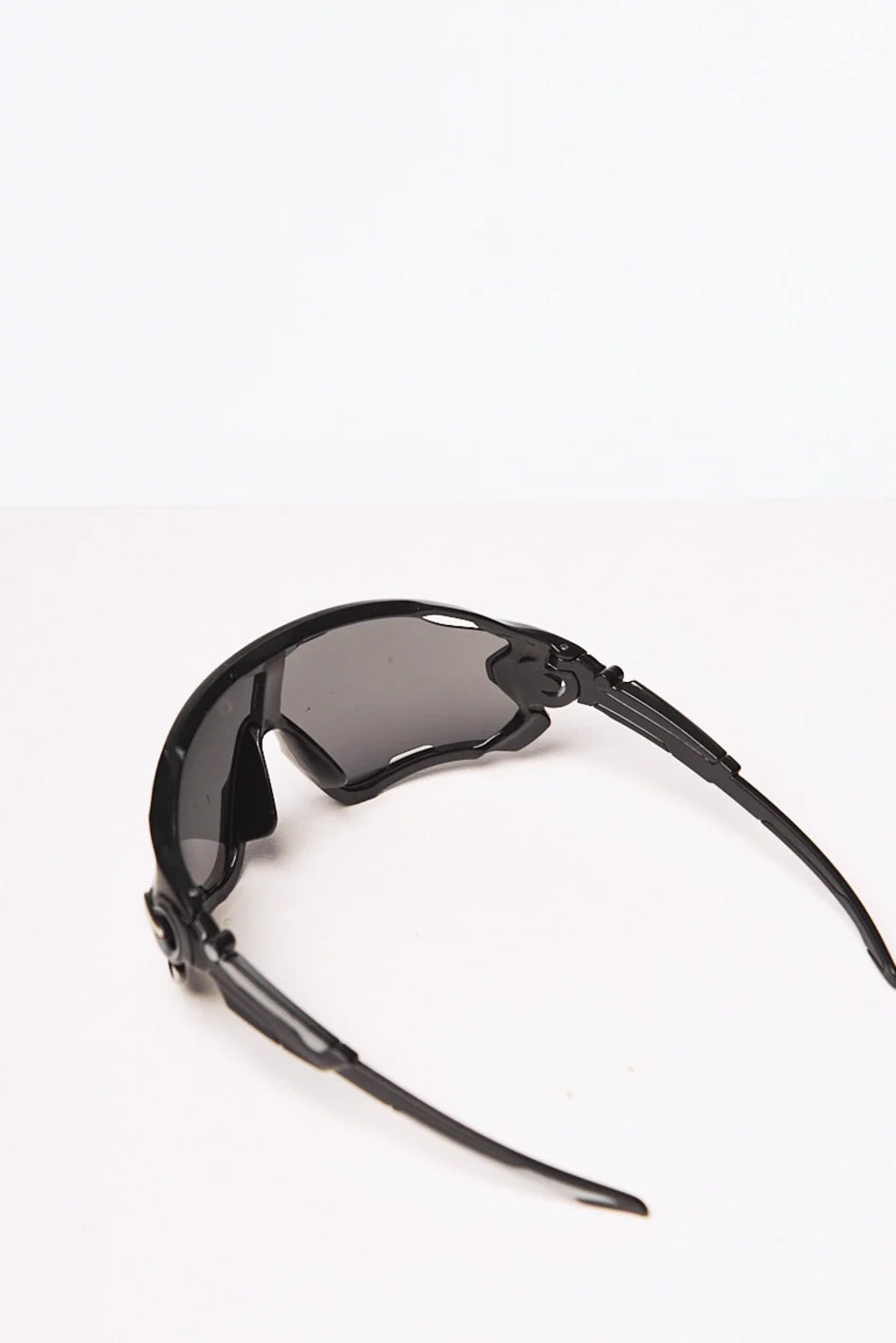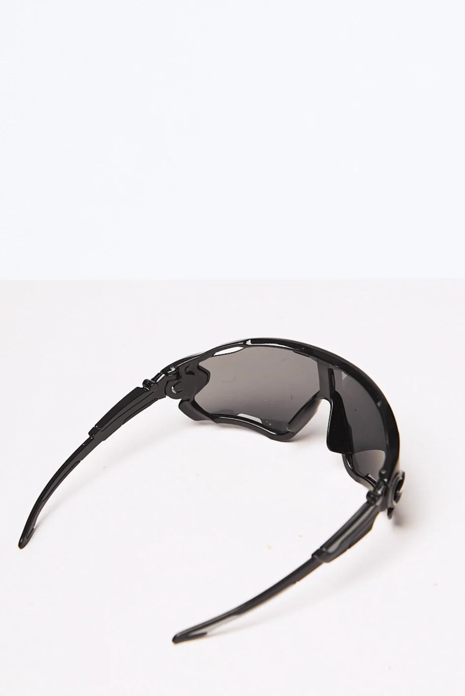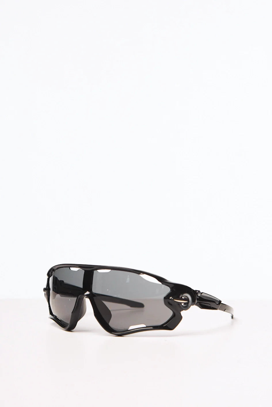Sport-style photochromic sunglasses in a sleek black frame. Equipped with polycarbonate lenses that shield your eyes from sun, wind, and sand. UV 400 protection ensures maximum defense against harmful ultraviolet rays. Comes with a protective case.
