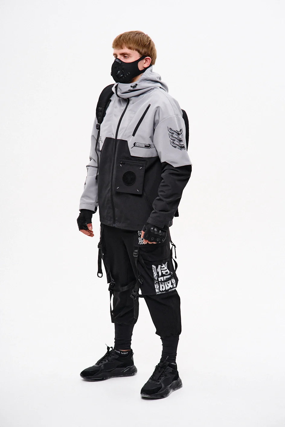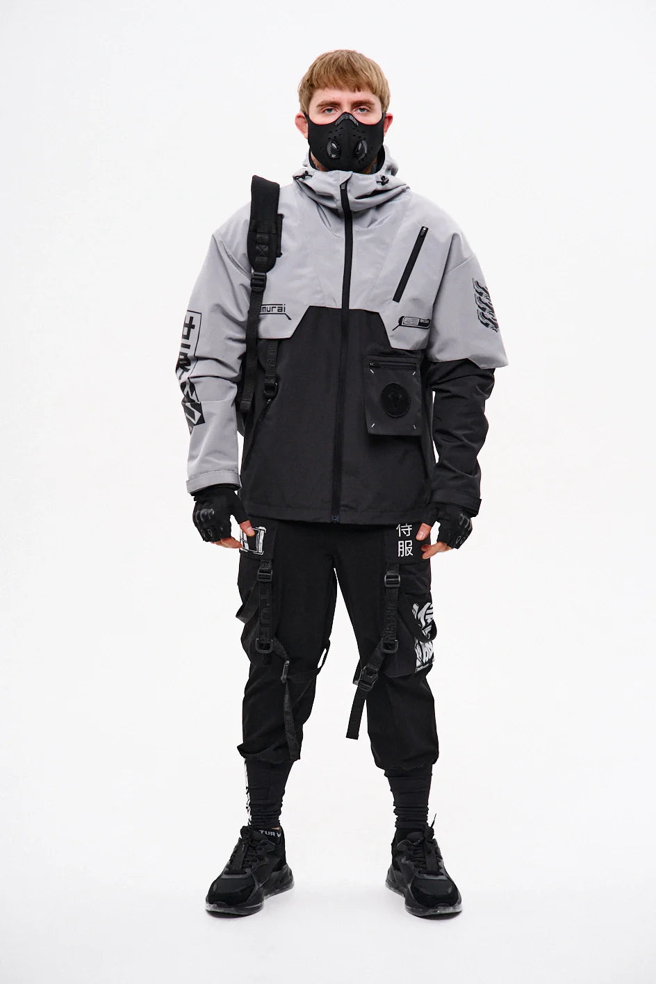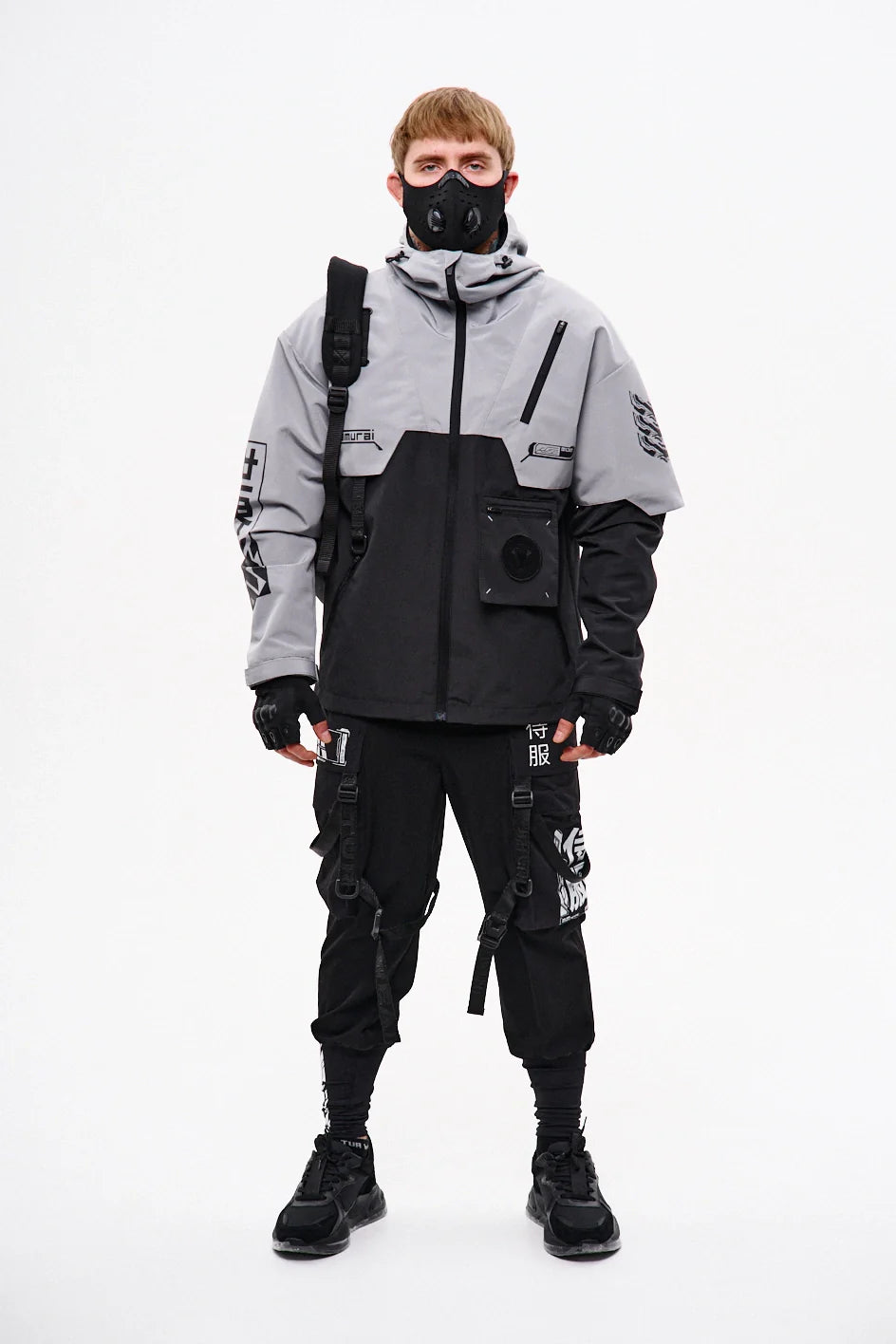 Metal buckle, 100% polyester straps, reflective waterproof zippers, 100% nylon velcro