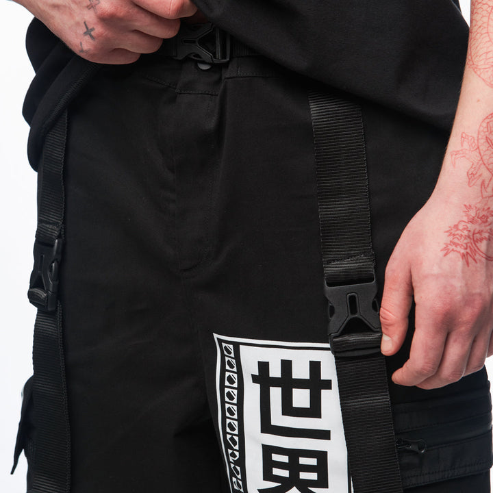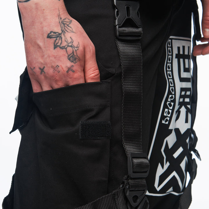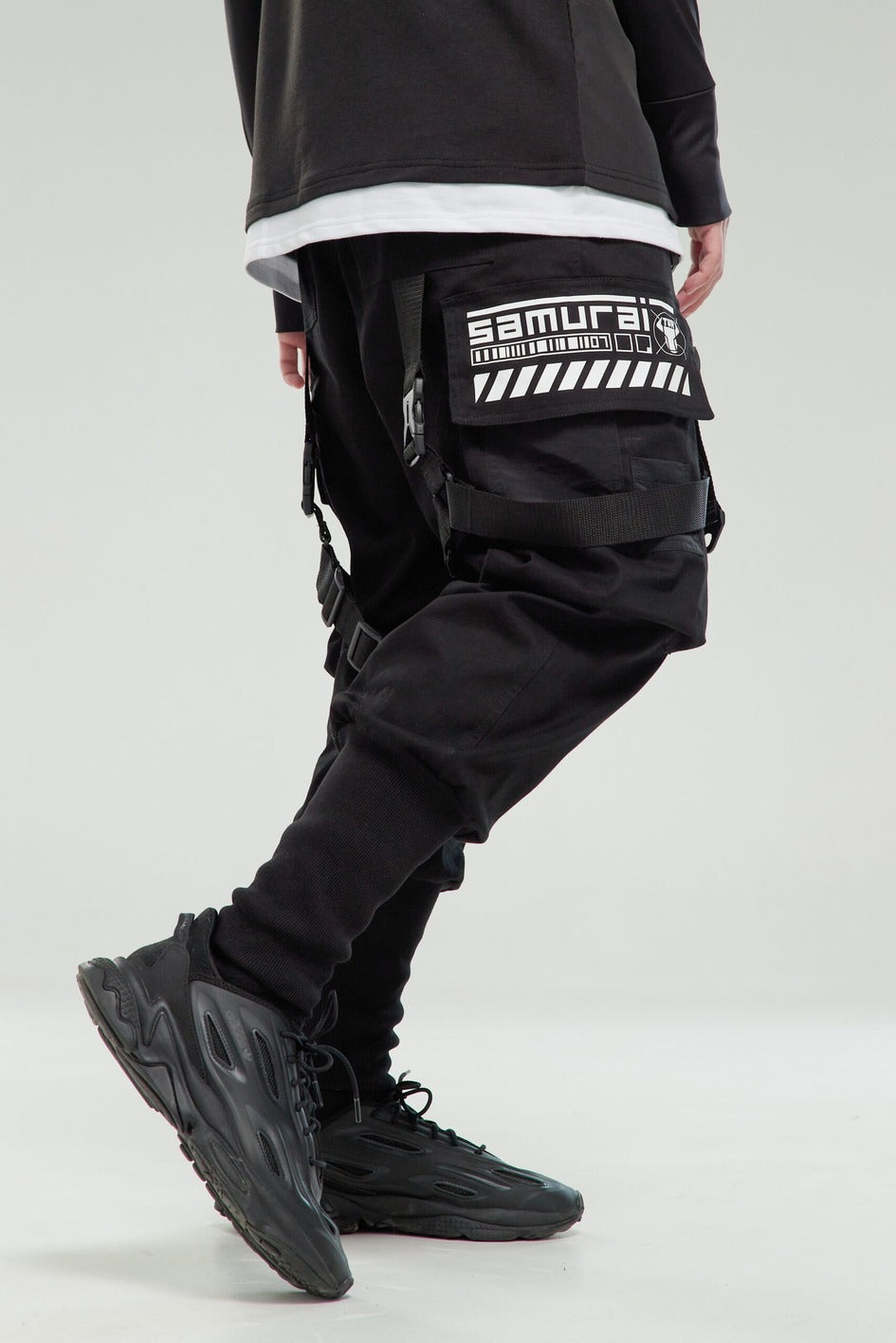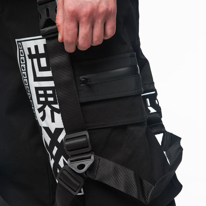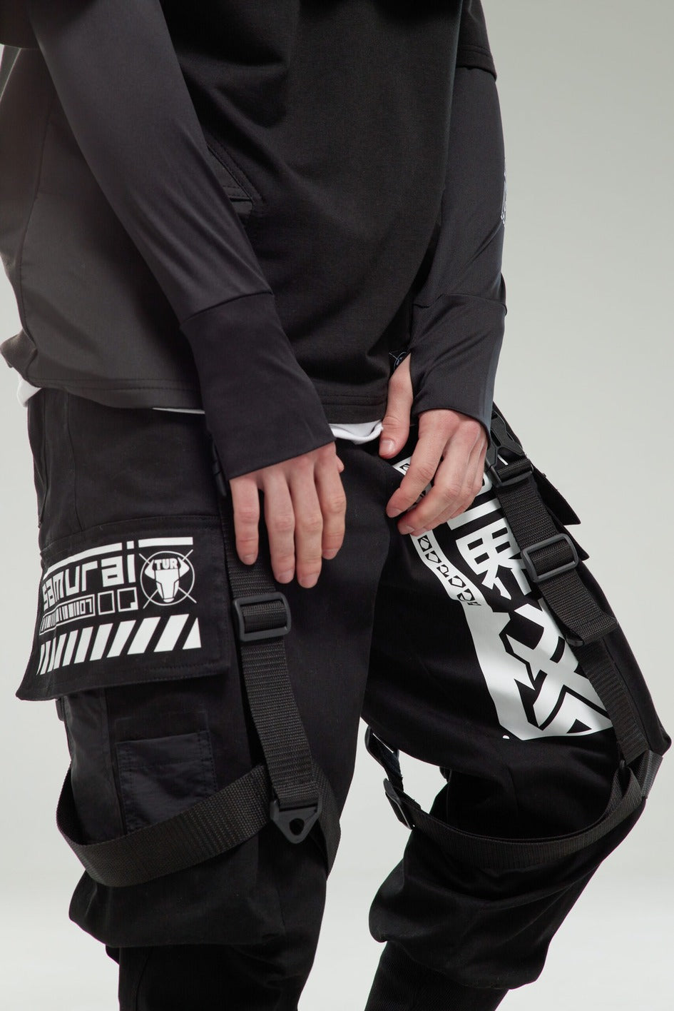 Visual highlights include a large TUR kanji print on the left leg and Samurai lettering with a logo on the right. 4 cm tactical straps with fasteners amplify the techwear aesthetic and battle-ready attitude. These aren’t just pants — they’re part of your armor.