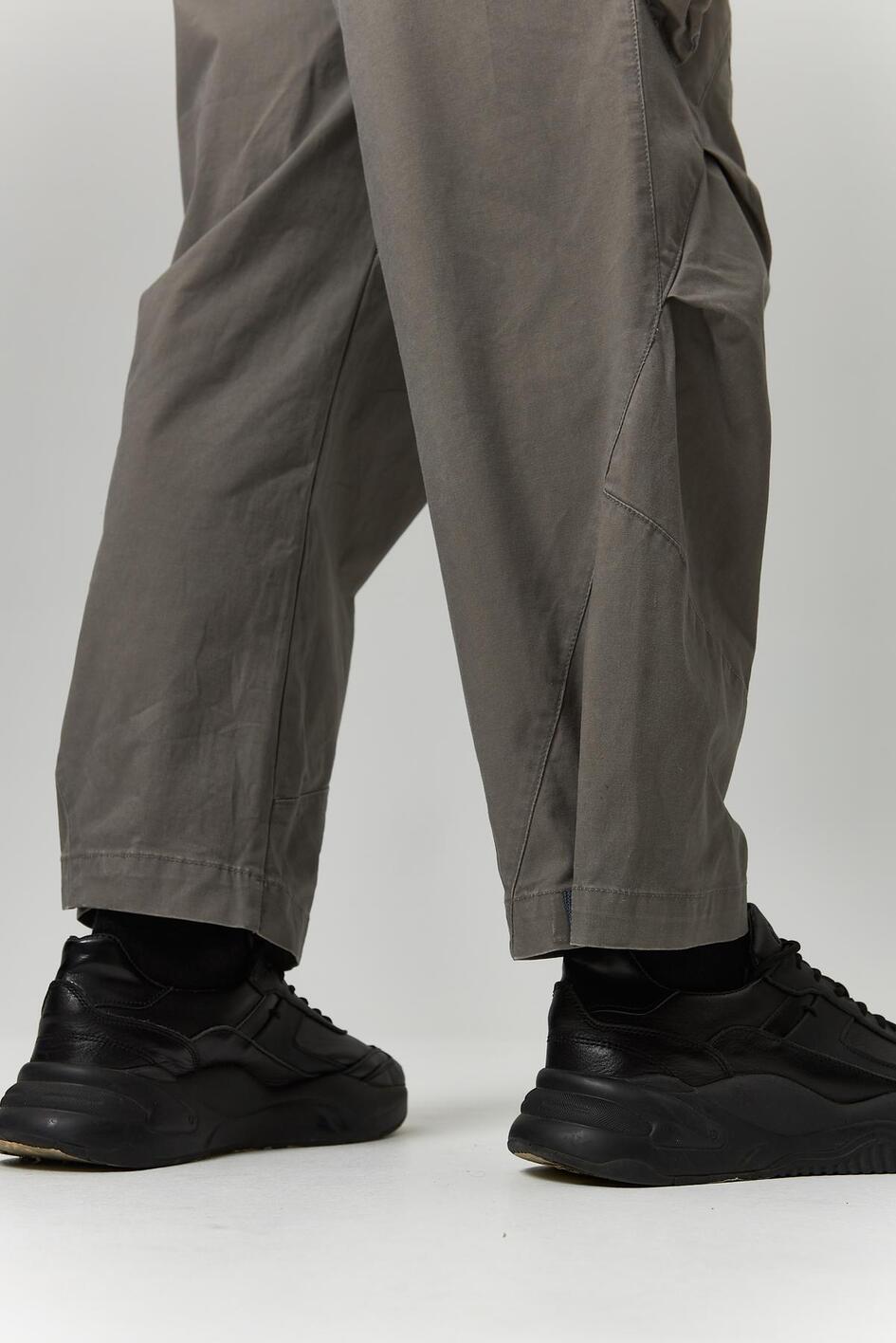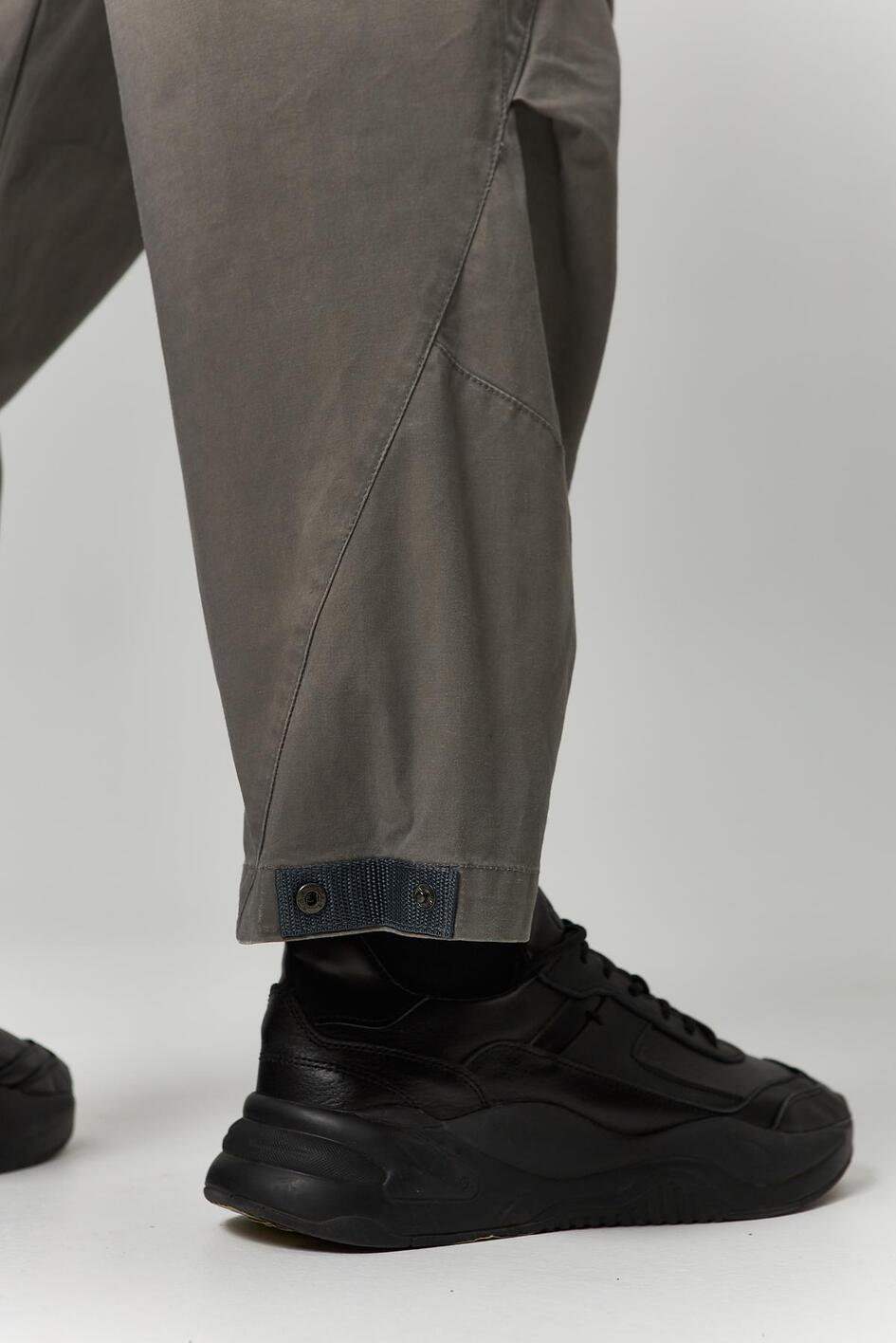 Cotton with a small amount of polyester — a dense, breathable material that provides comfort and durability. The fabric is non-elastic but holds its shape well after washing. The crinkled fabric inserts have a relief structure, enhancing functional areas and giving the product a technical look. Hardware — YKK zippers, resistant to load and repeated use.