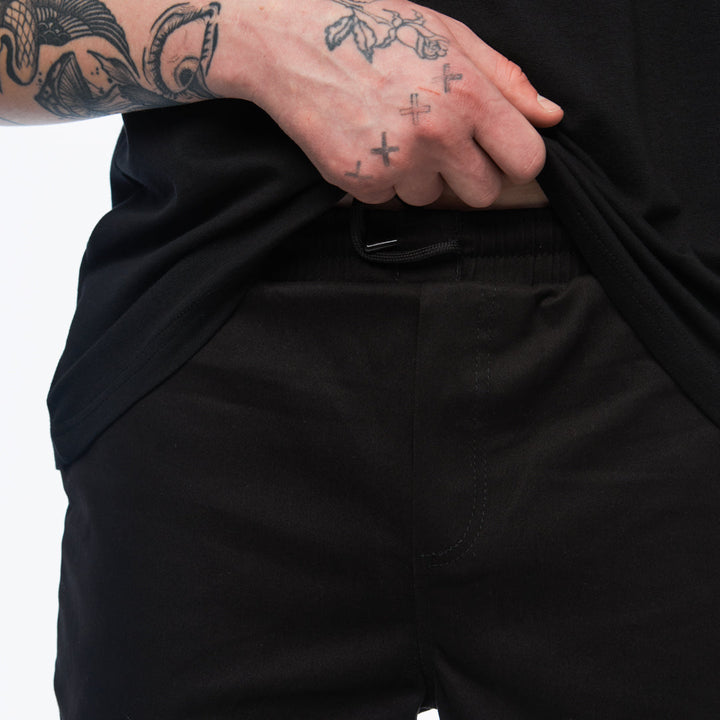 Tapered pants with cuffs — minimalism with character. The elastic waistband with a drawstring ensures a secure fit without excess details. Six functional pockets: two classic front pockets, two side patch pockets with Velcro flaps, and two back pockets — thoughtfully designed for convenience.