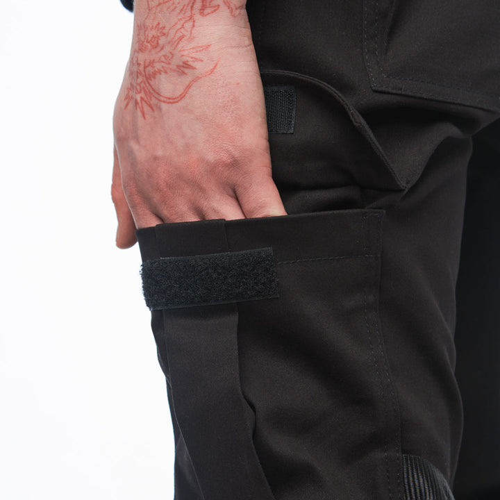 The standout feature is the straps with fixators at the knee area, adding a tactical vibe and emphasizing the silhouette. Perfect for those who want to look sharp, even in the everyday hustle.