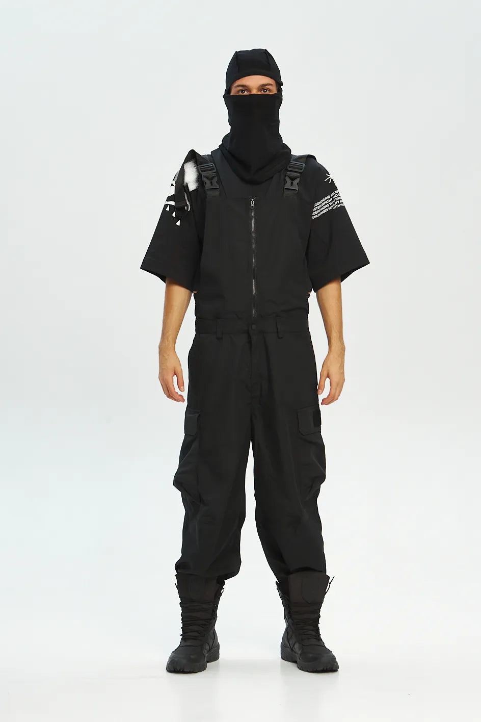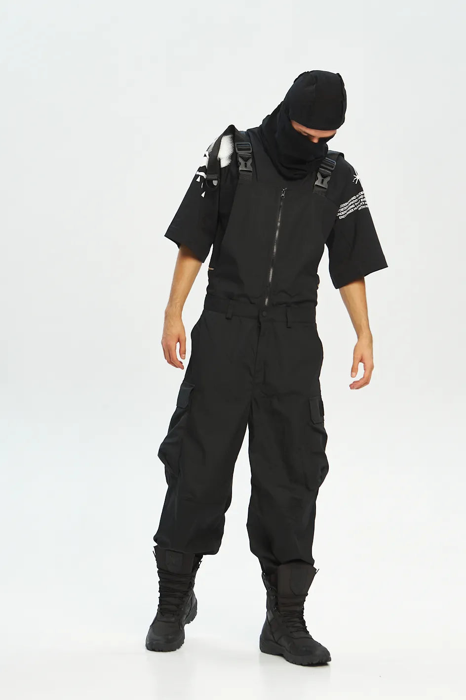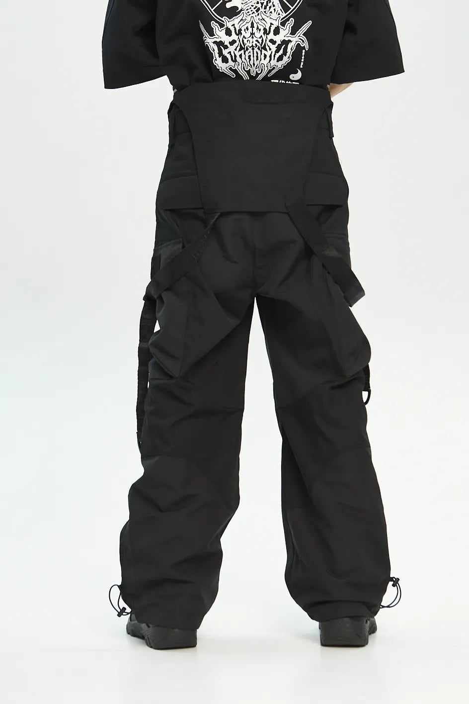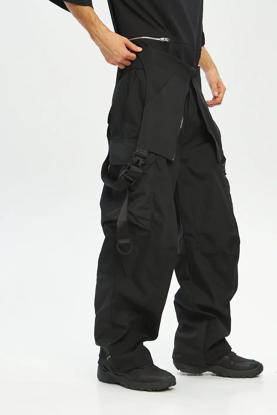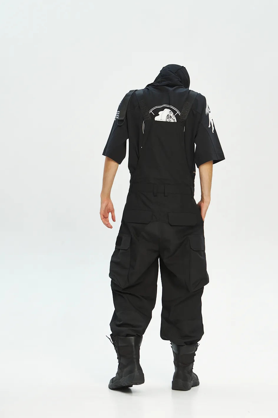 Relaxed-fit cargo overalls blending utilitarian function with street-ready aesthetics.