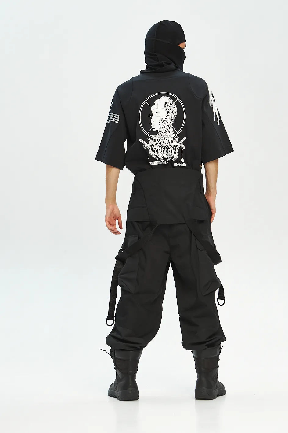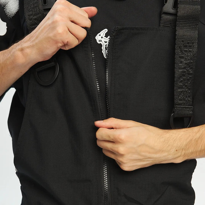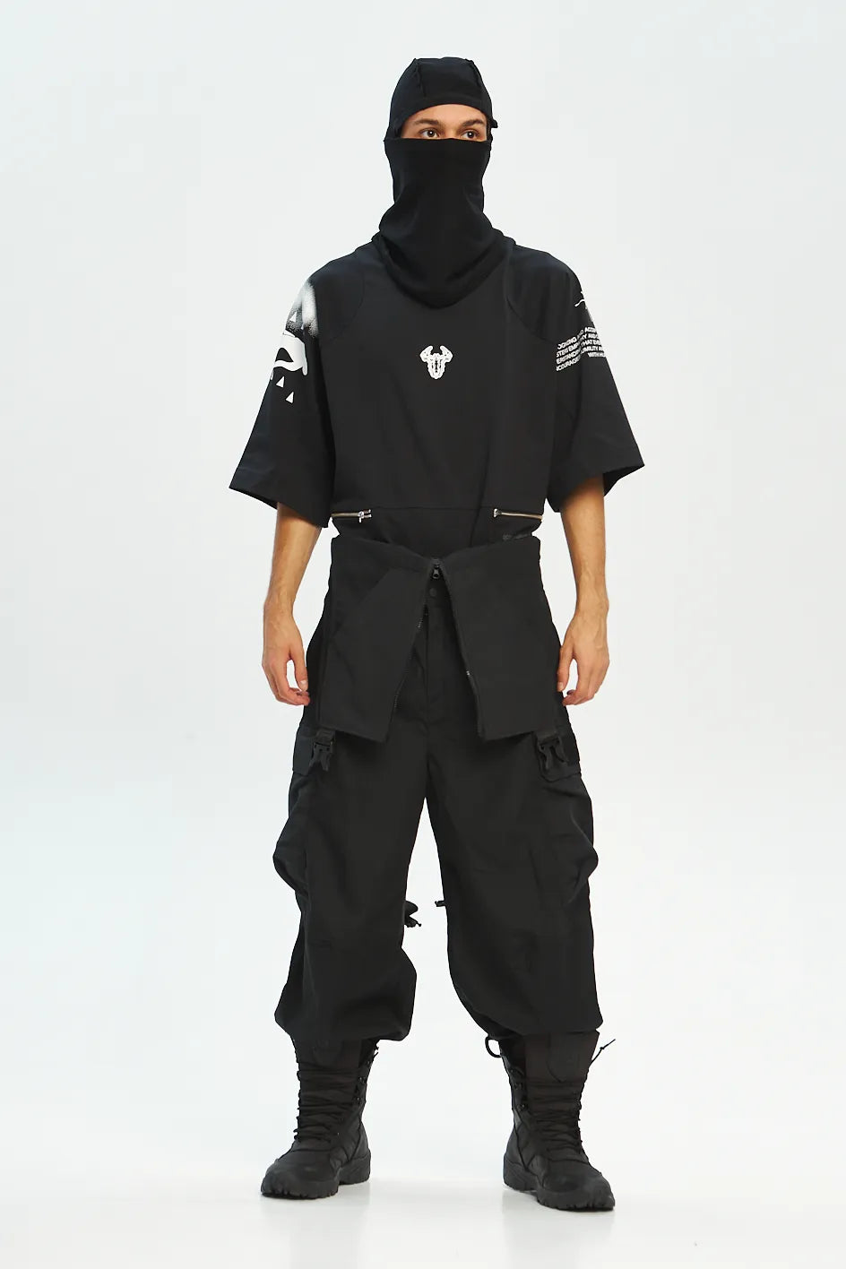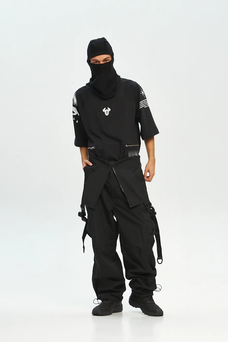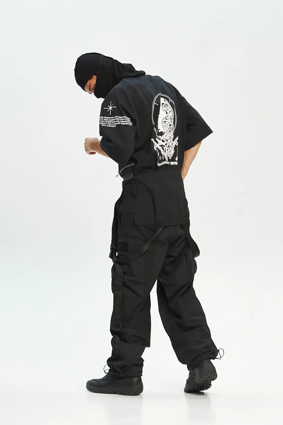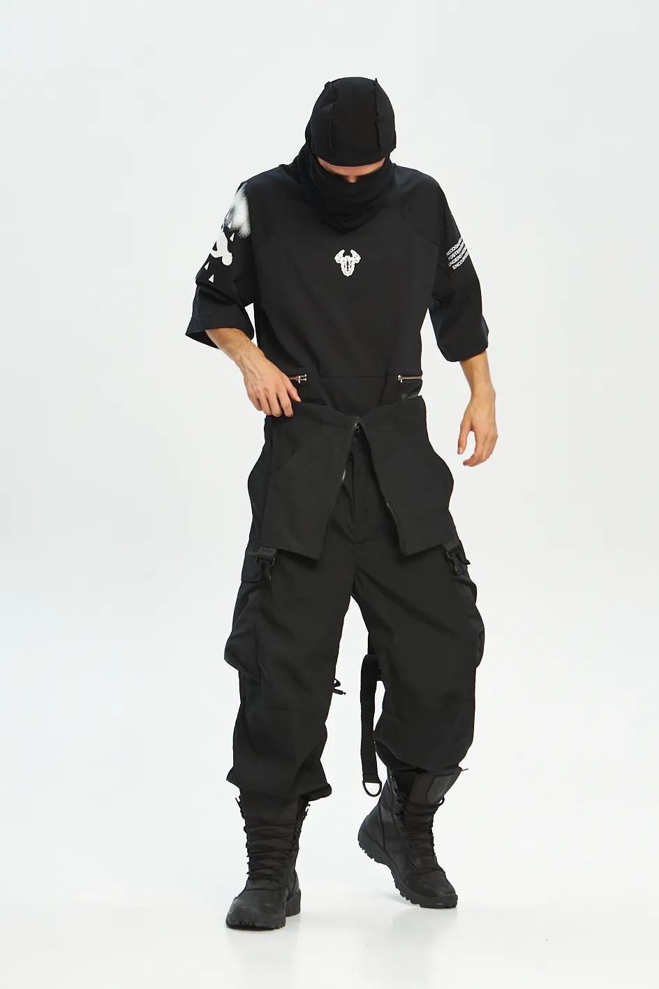 Relaxed-fit cargo overalls blending utilitarian function with street-ready aesthetics.