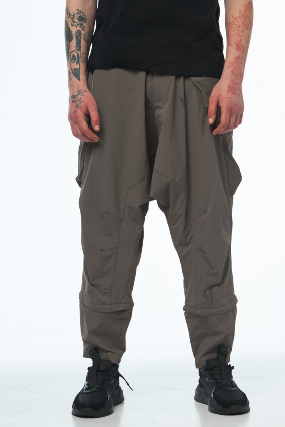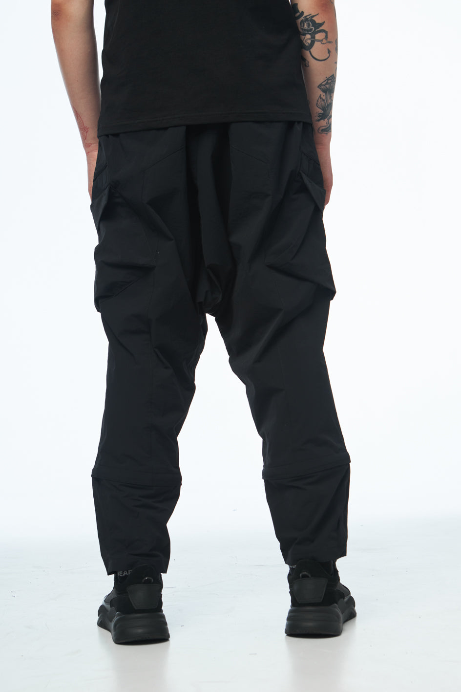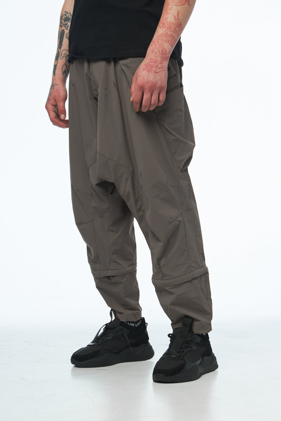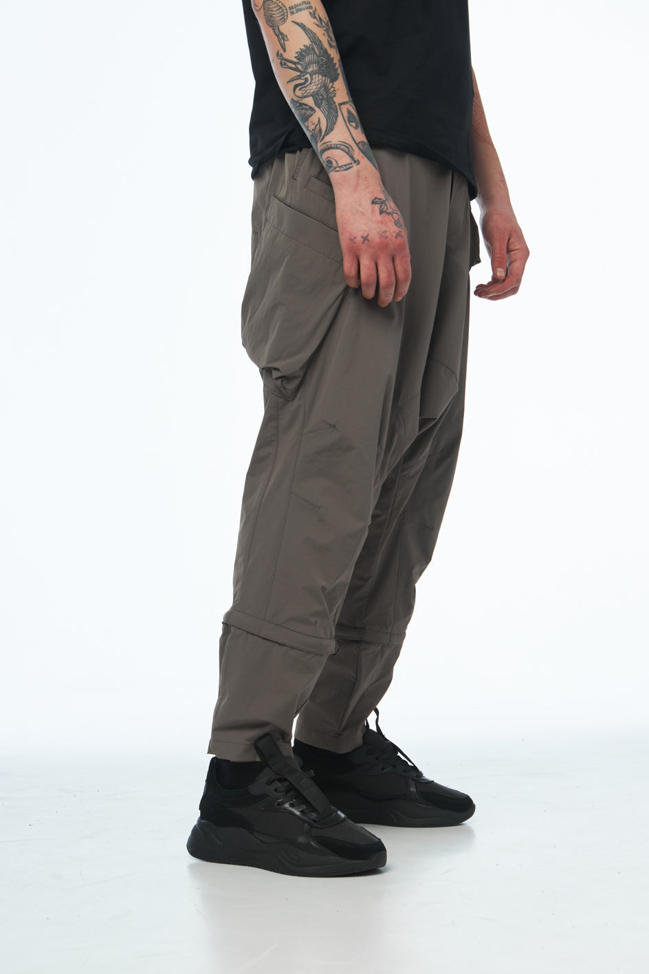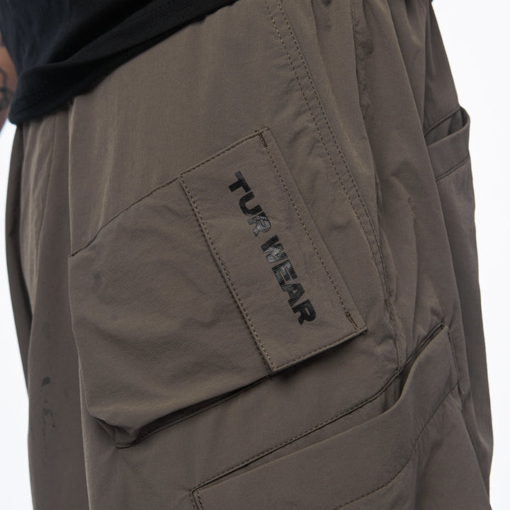 Functional details include: two large side cargo pockets with magnetic closures, a small flap pocket with TUR WEAR print, and two rear pockets. A standout feature — detachable lower legs with zippers allow for adjustable length, so you can wear them full-length or cropped. The waistband includes built-in elastic and dual strap adjustment for a no-compromise custom fit.
