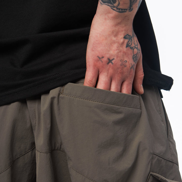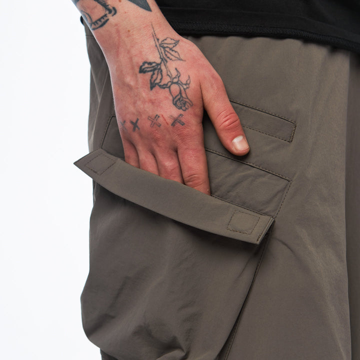 Loose-fit cargo pants with a low rise and dropped seat seam — an ultra-modern silhouette built for dynamic movement. Made from lightweight stretch fabric that adapts quickly to your body without restriction. Articulated knee darts improve fit and enhance anatomical shaping.