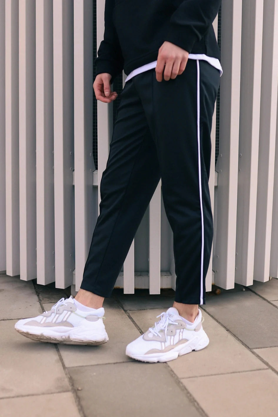 A contrasting front seam runs along the full length of the leg, adding structure and style.