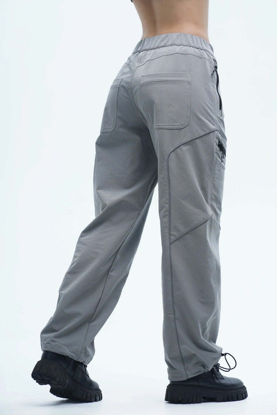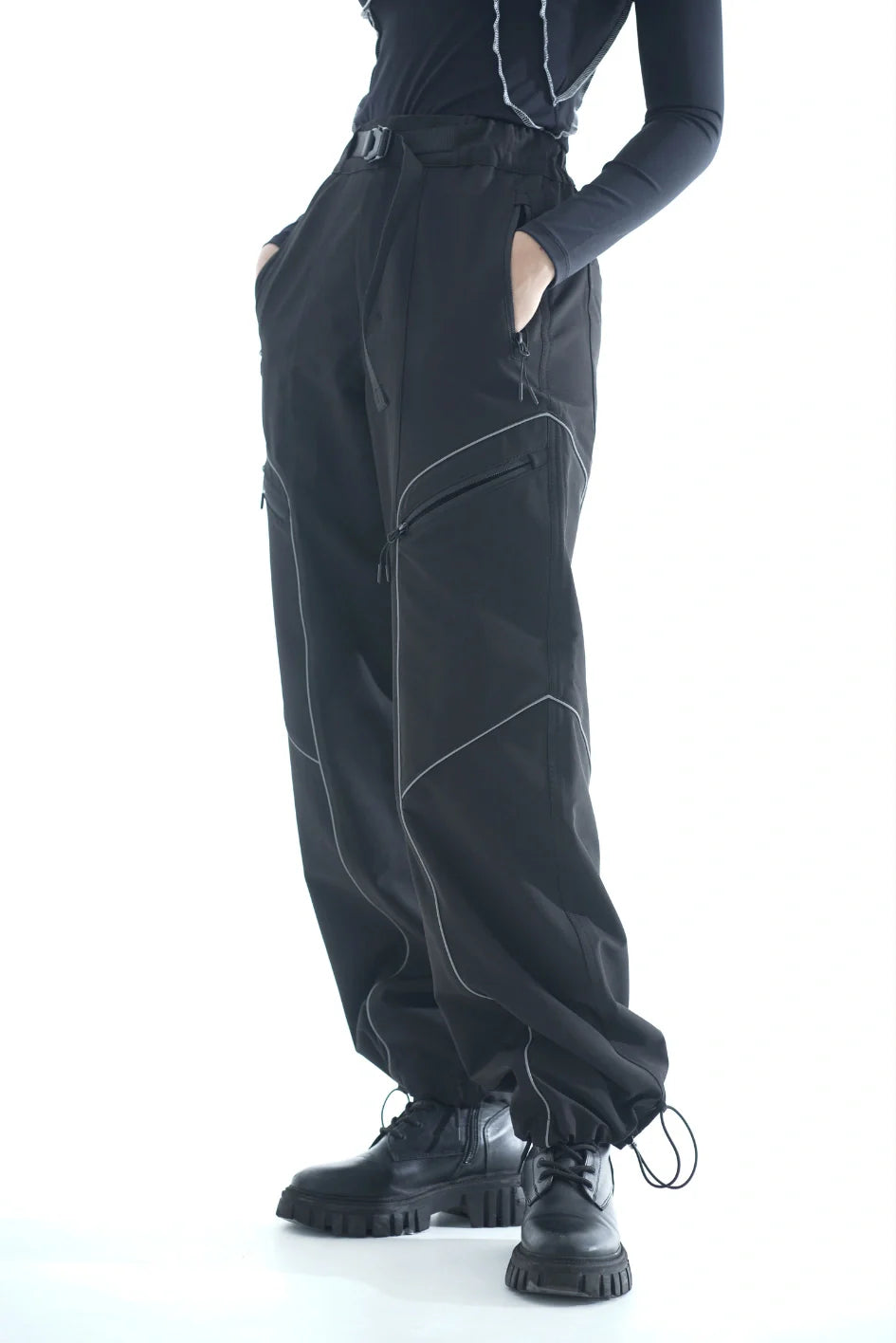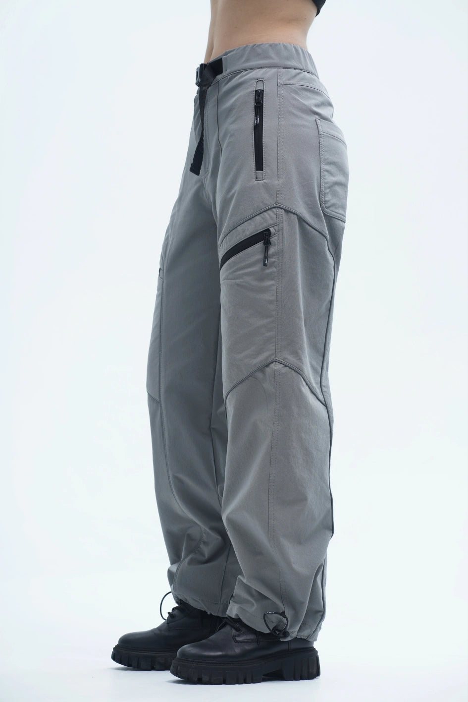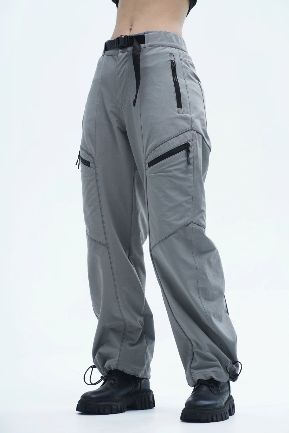 Straight-cut nylon pants — a versatile option for those who value comfort and detail. Equipped with six pockets: two upper and two side zip pockets, two back patch pockets. Built-in belt with buckle and elastic waistband ensure a perfect fit.