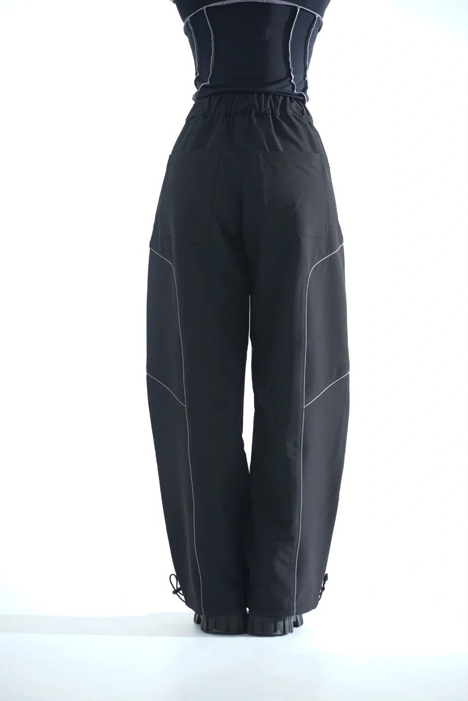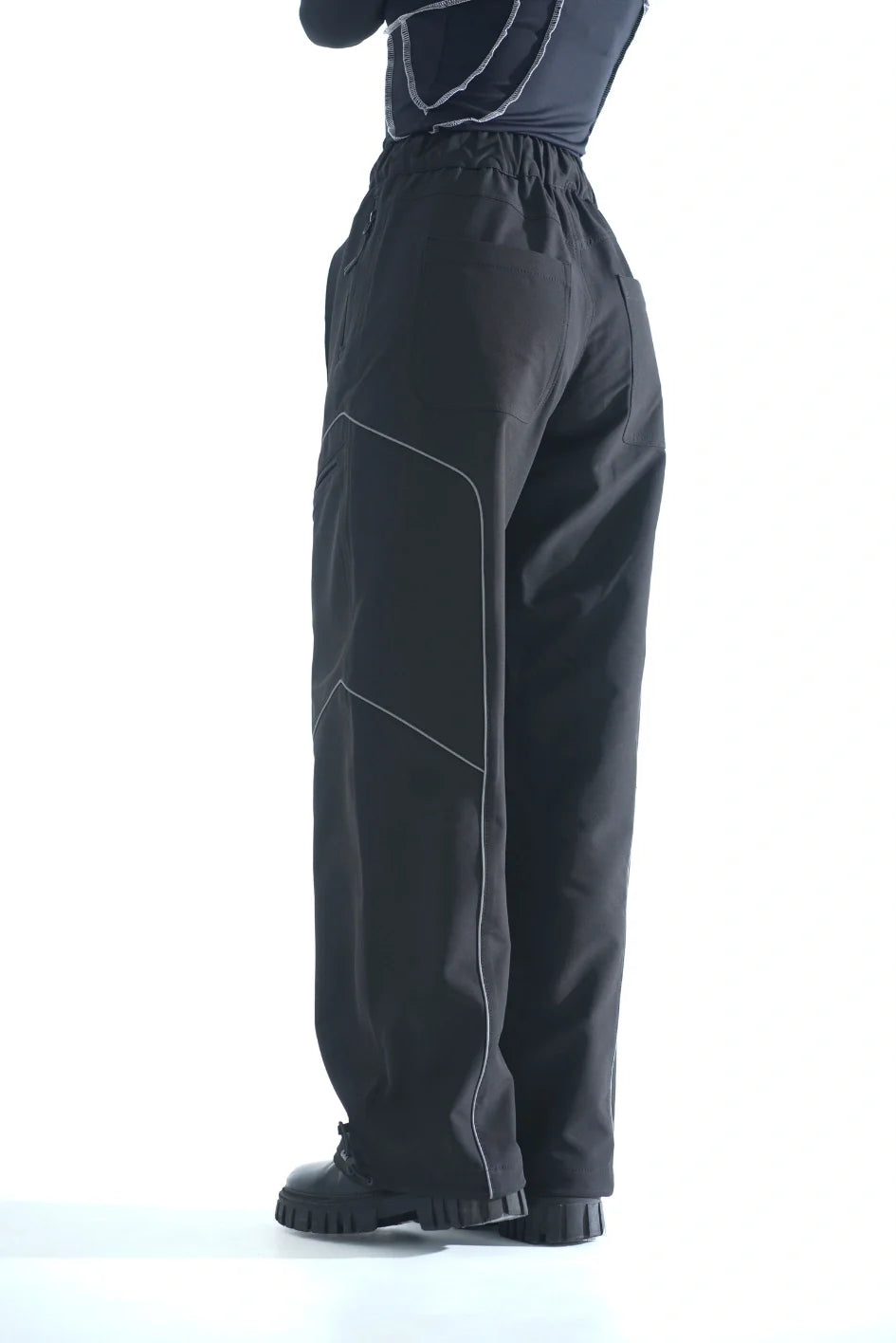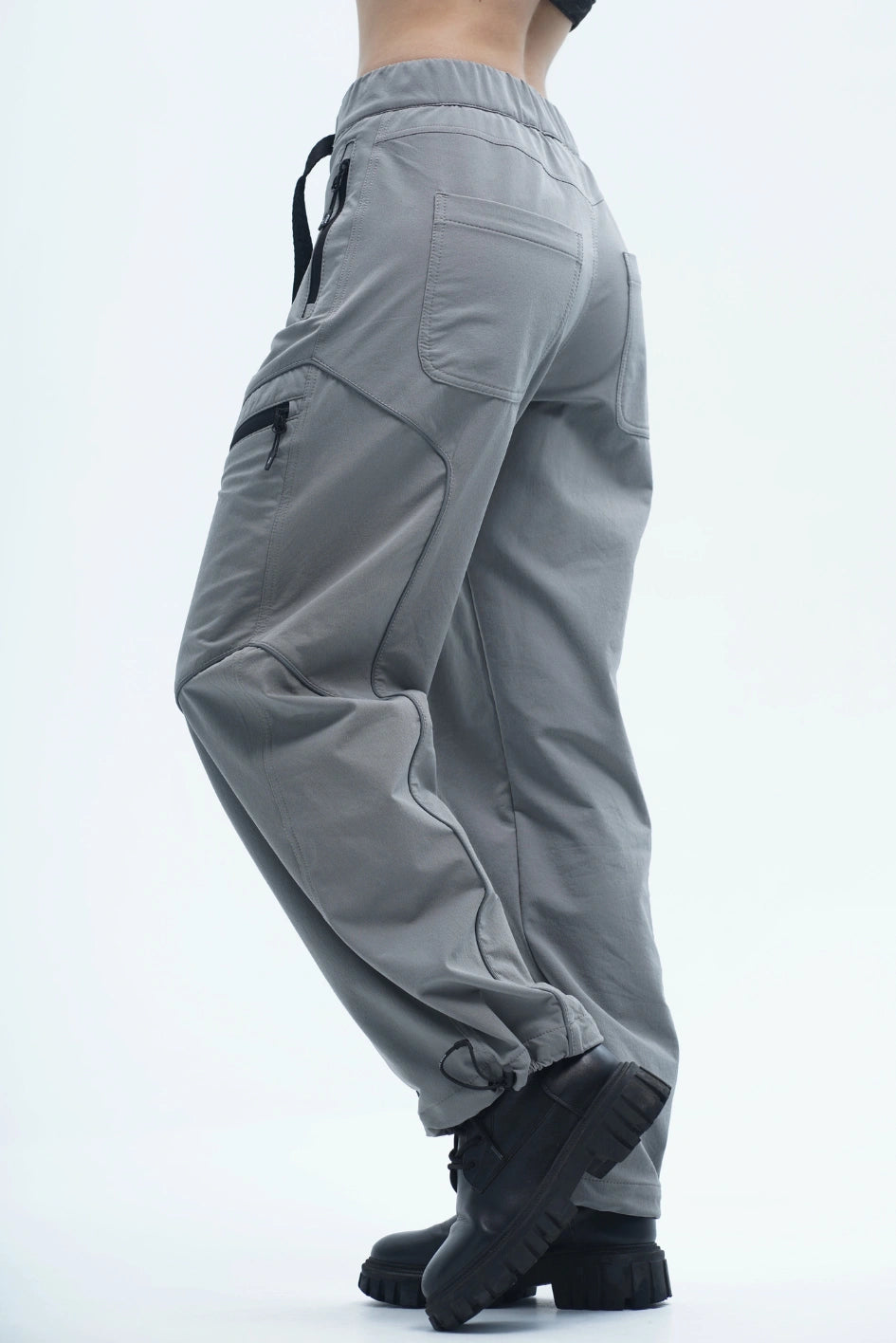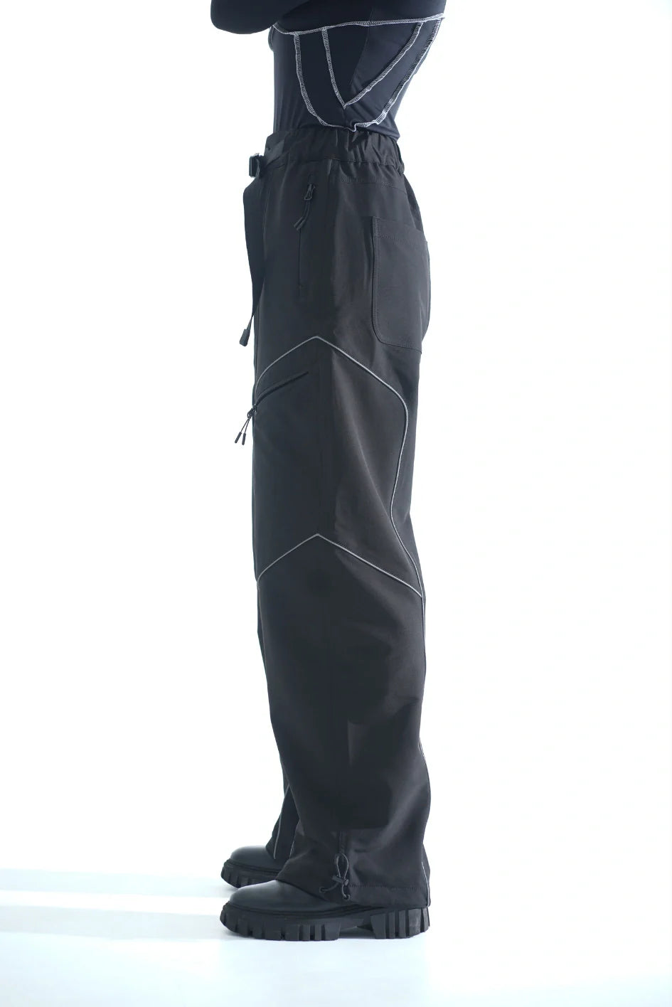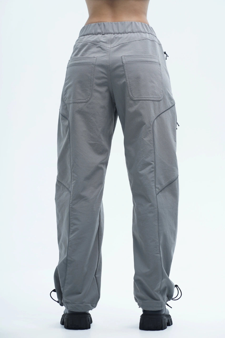 Straight-cut nylon pants — a versatile option for those who value comfort and detail. Equipped with six pockets: two upper and two side zip pockets, two back patch pockets. Built-in belt with buckle and elastic waistband ensure a perfect fit.