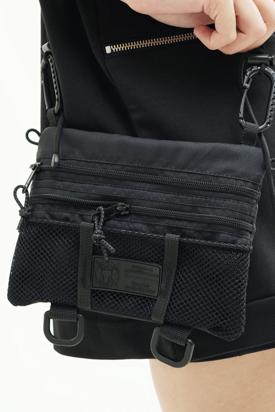 The main compartment, interior dividers, and a central zip section give you the flexibility to organize your belongings just the way you like. An external mesh pocket offers quick access to essentials, while additional D-rings allow you to attach gear and carabiners with ease. The adjustable handle with durable plastic clips ensures comfortable carrying. This is more than just a bag — it’s a versatile accessory that adapts to your needs and highlights your unique style.