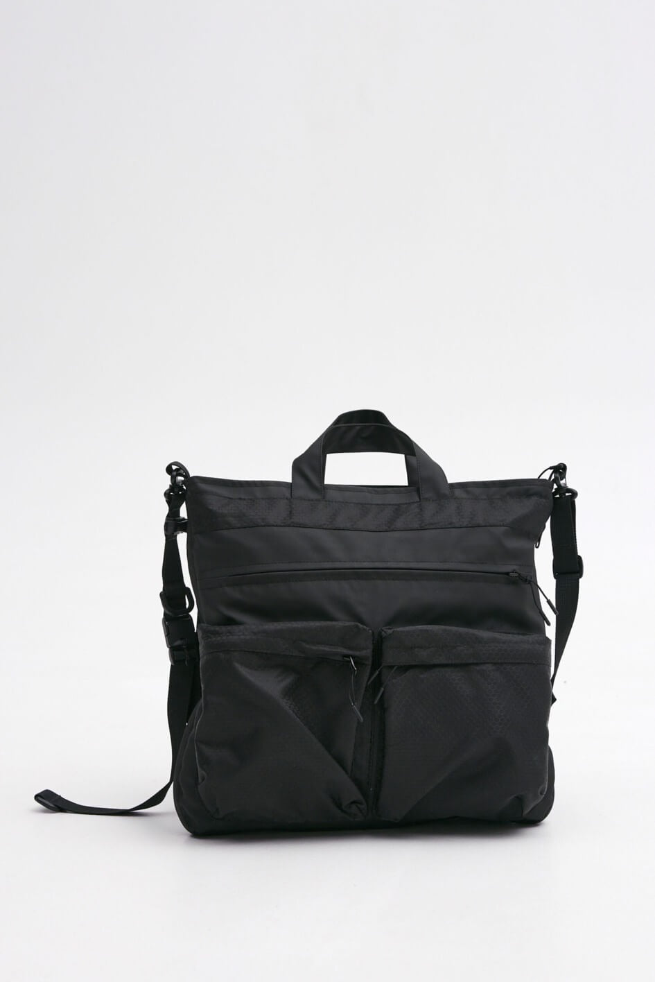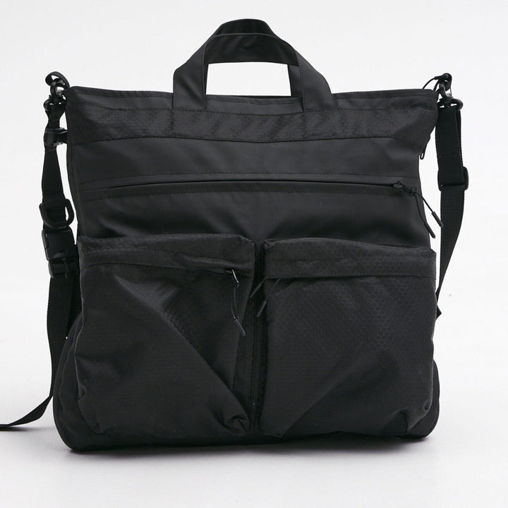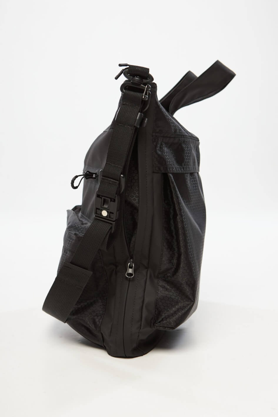 Standard handles for carrying by hand or over the shoulder, and a long adjustable strap.