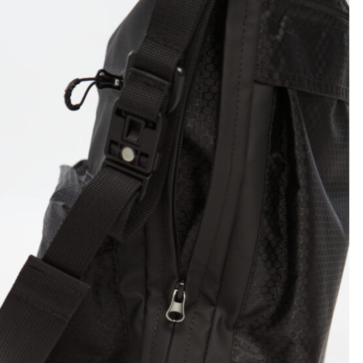 100% Polyamide fasteners with magnets, 100% Polyester straps, reflective waterproof zippers, 100% Nylon Velcro.